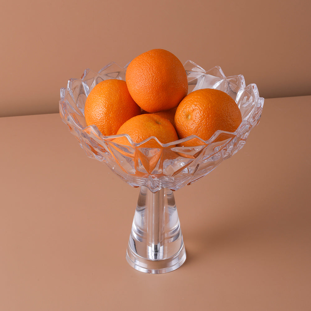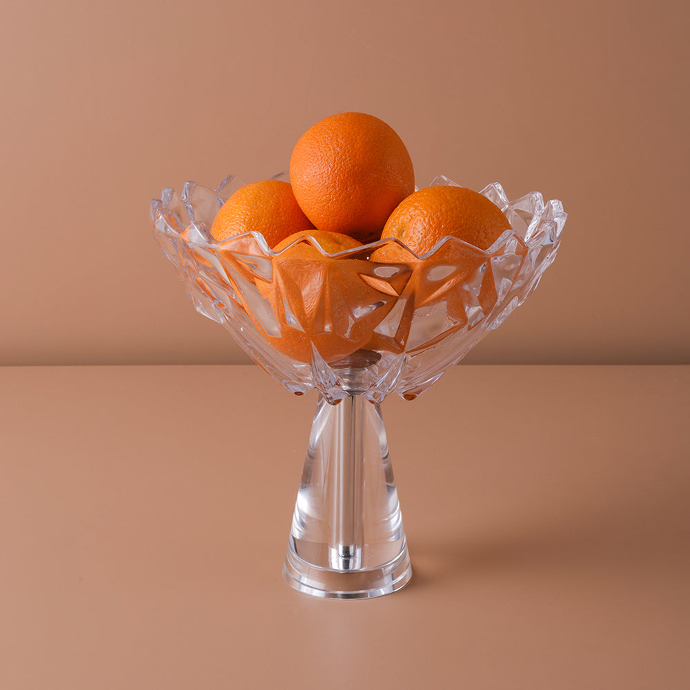 This clear glass bowl features an elegant decorative design, making it ideal for serving fruit, chocolates, or nuts. Its transparent quality highlights the contents beautifully, while the refined pattern adds a sophisticated touch to any table setting. Crafted for both functionality and style, it enhances presentation and complements various occasions.
