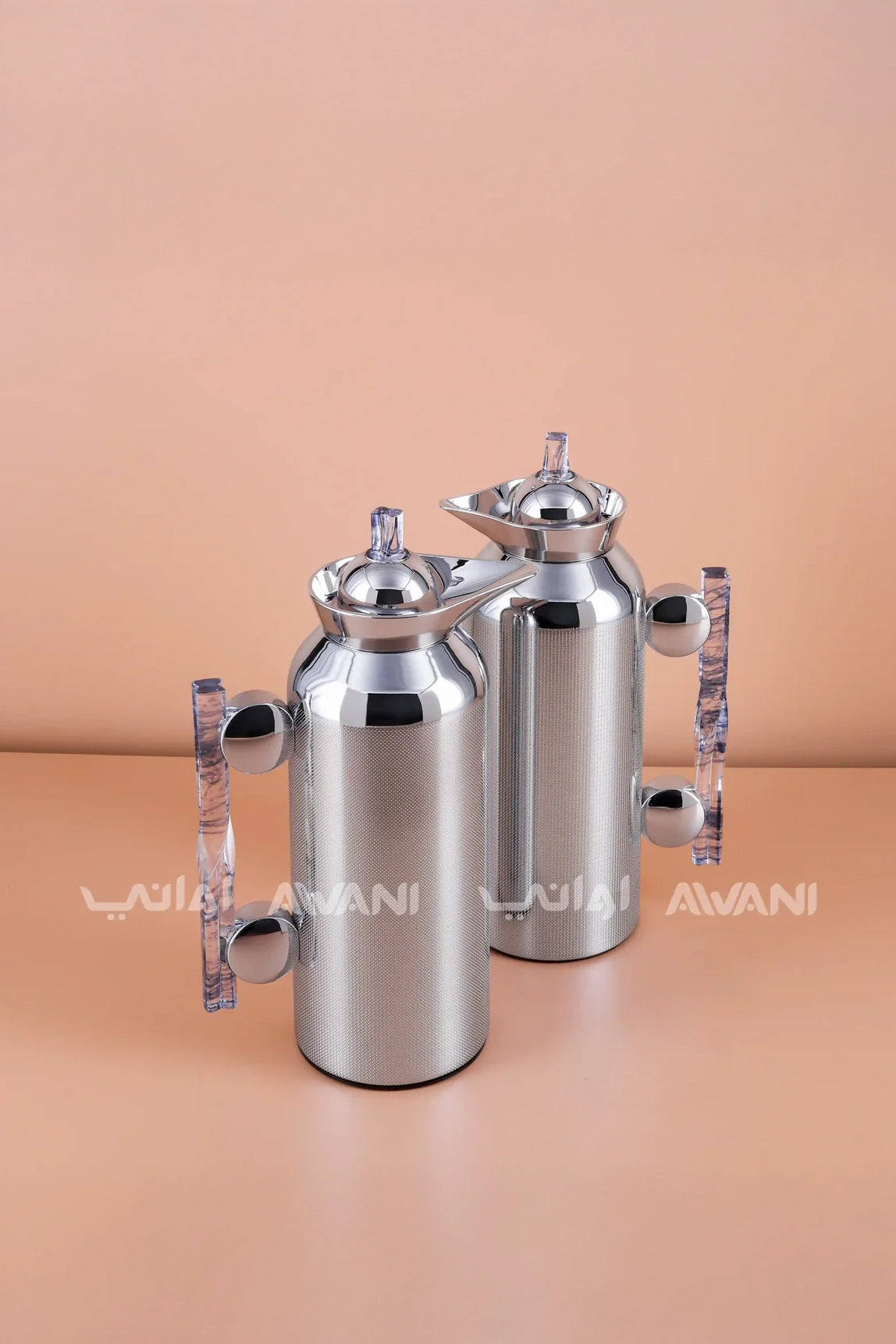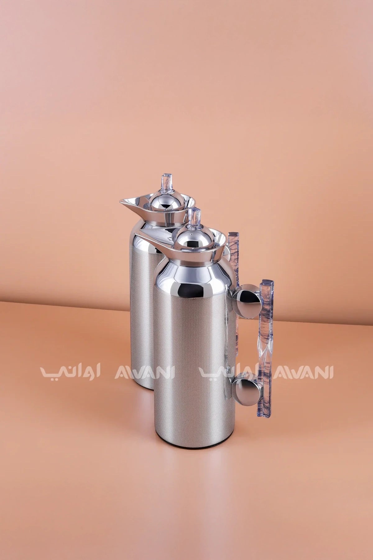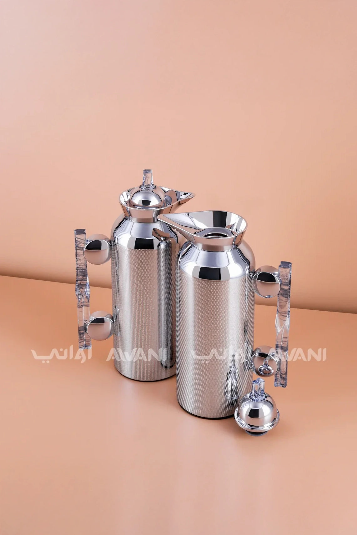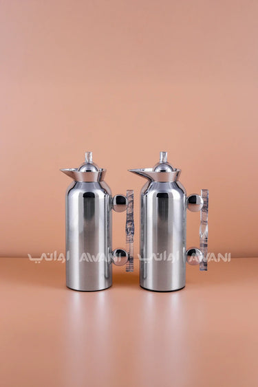 Elevate your serving style with this sleek stainless steel thermal flask set, featuring a unique modern silhouette and elegant dark wooden handle. Perfect for keeping beverages hot or cold for hours ideal for home, office, or gifting.