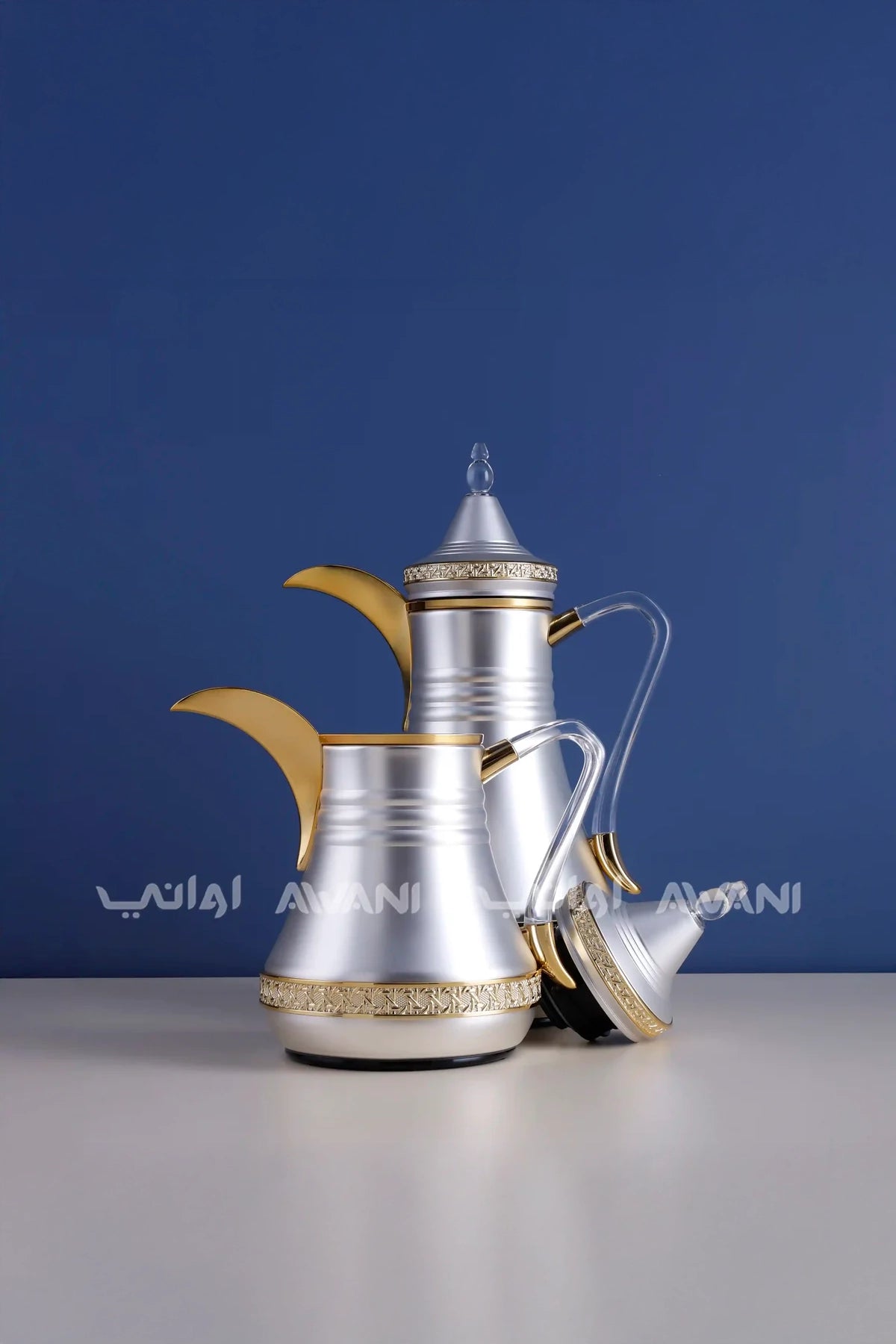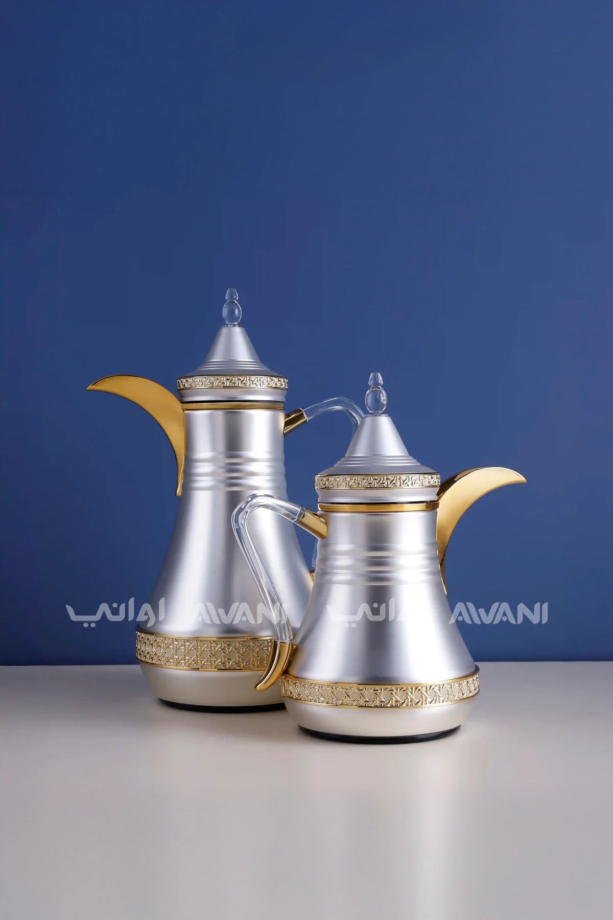 Dallah Set – 2 Pcs (0.35 ML + 1 L) Gold + Silver