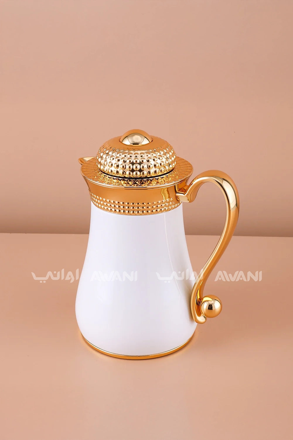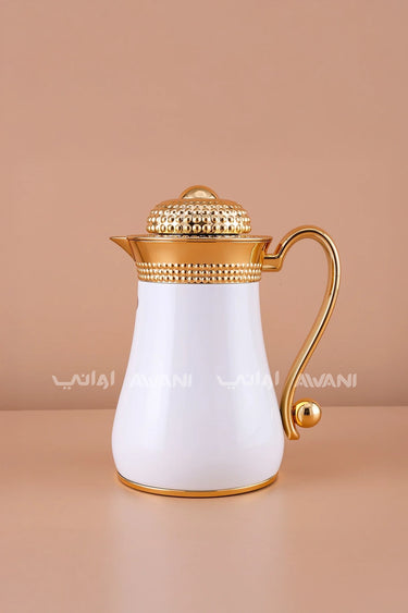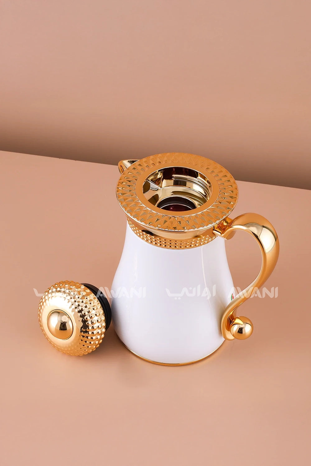 قارورة أنيقة مفرغة من الهواء بتصميم نقاط الفقاعات باللونين الأبيض والذهبي - مثالية للشاي والقهوة - 0.5 لتر