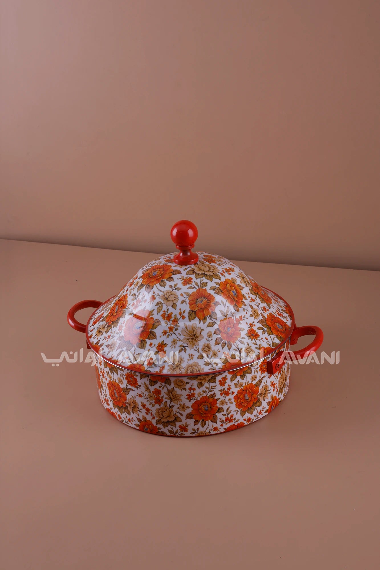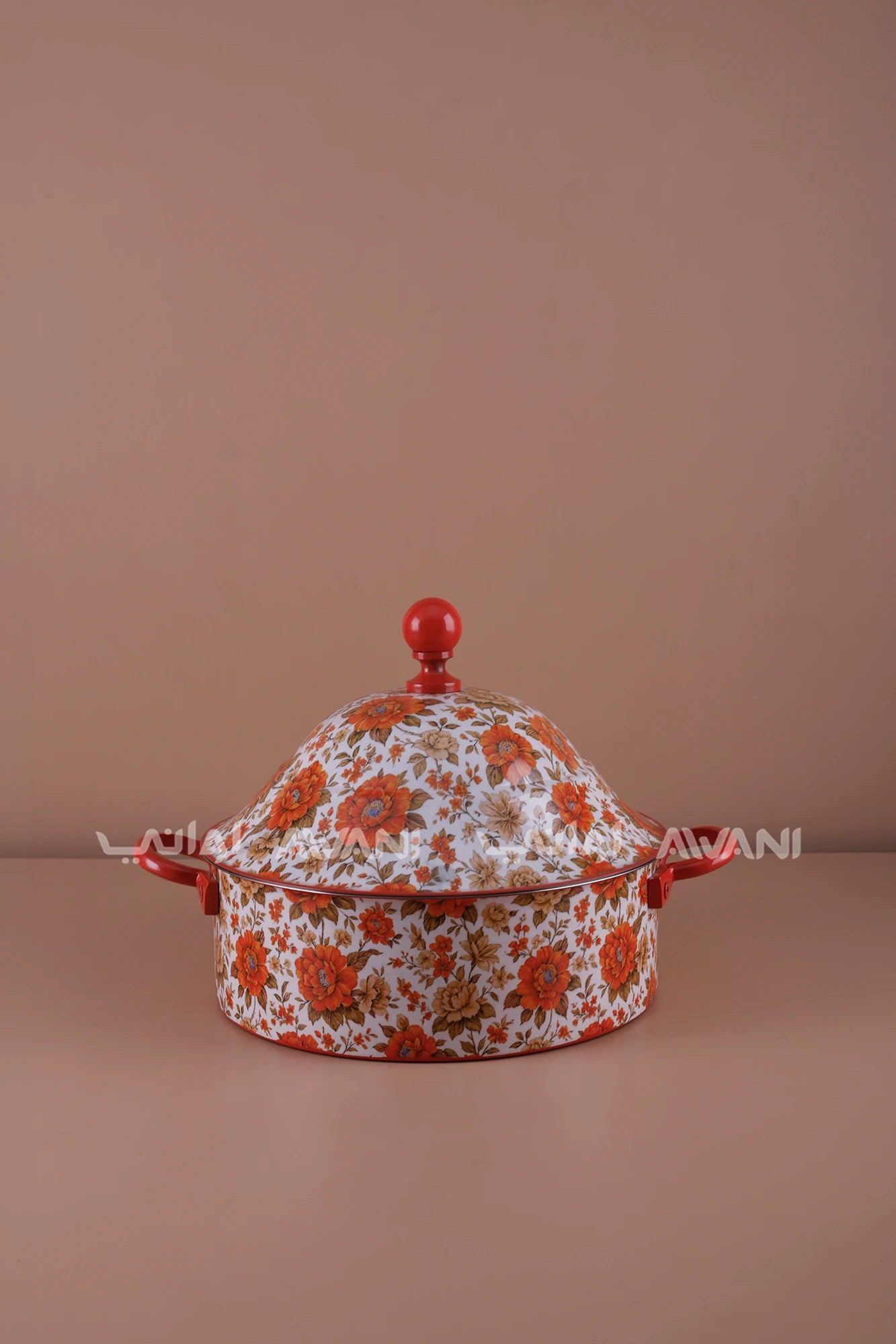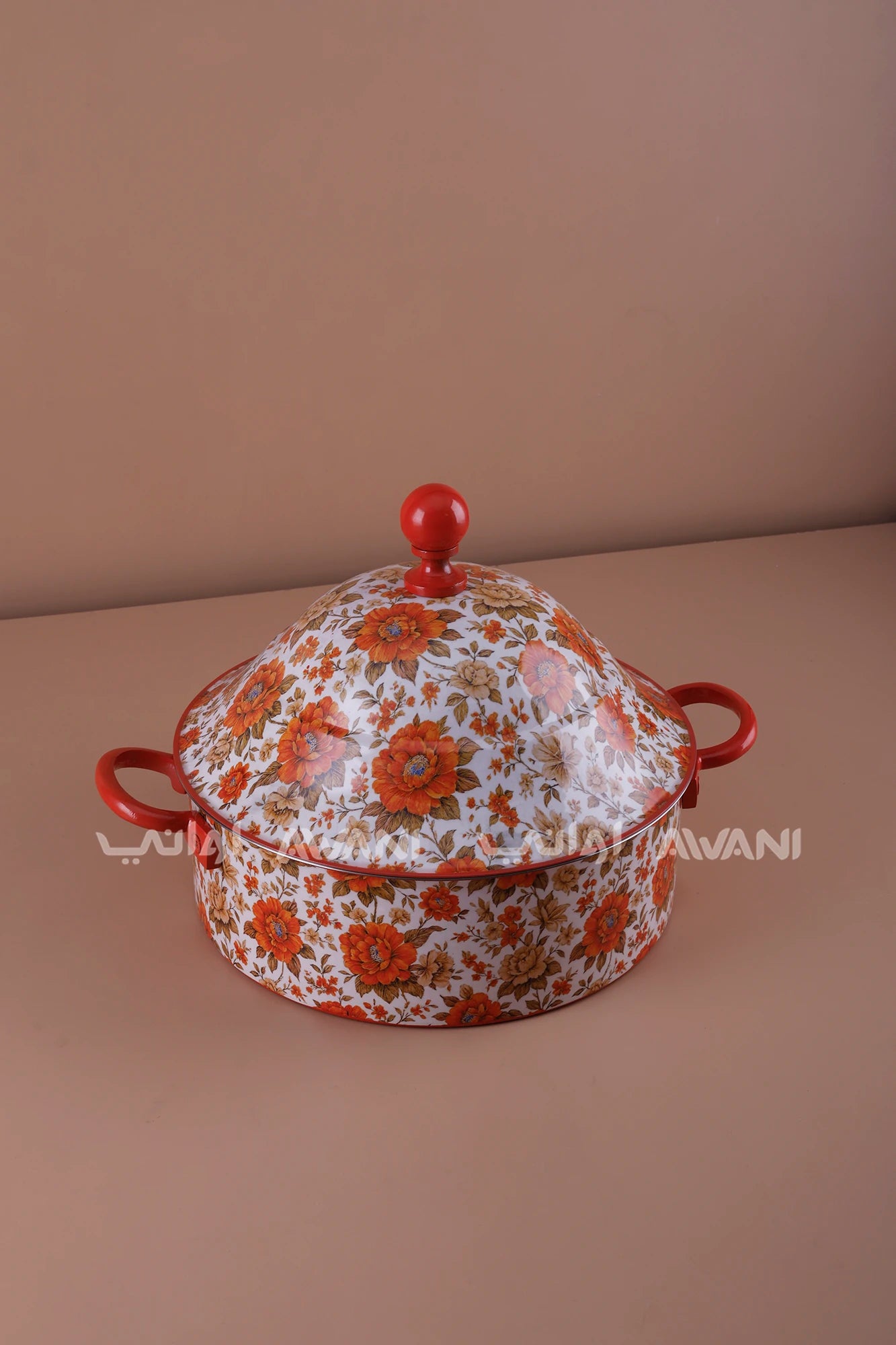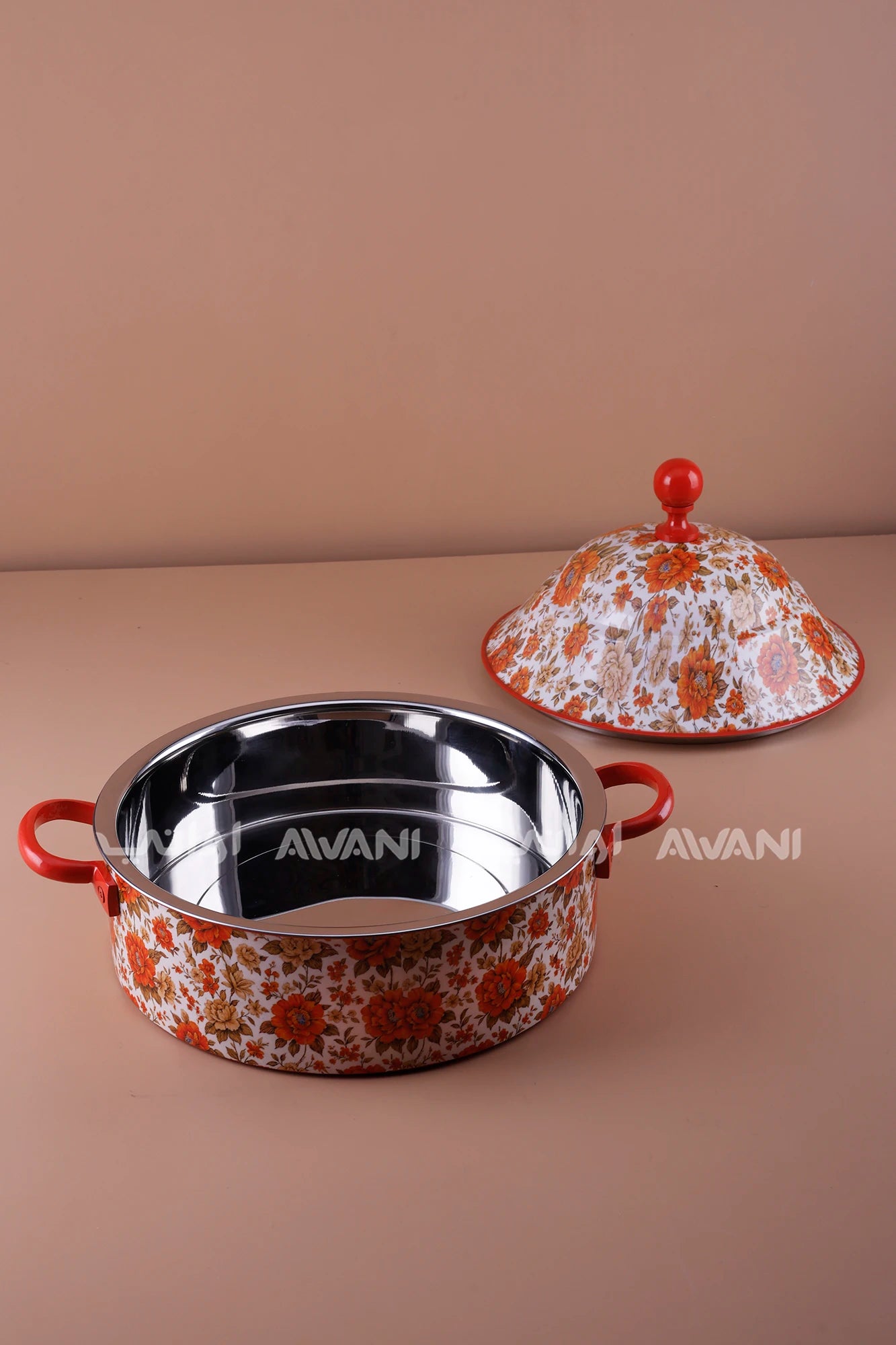Floral Print Stainless Steel Hot Pot – 5000 ml - Red / Orange
