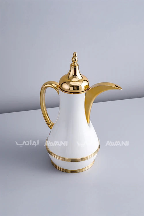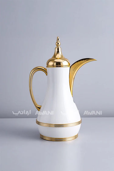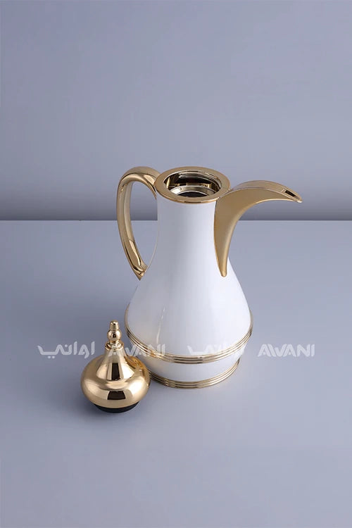 Arabic Vacuum Flask 1 L | Leakproof Arabic Dallah | White and Gold