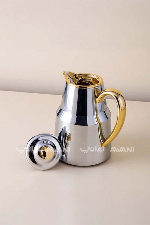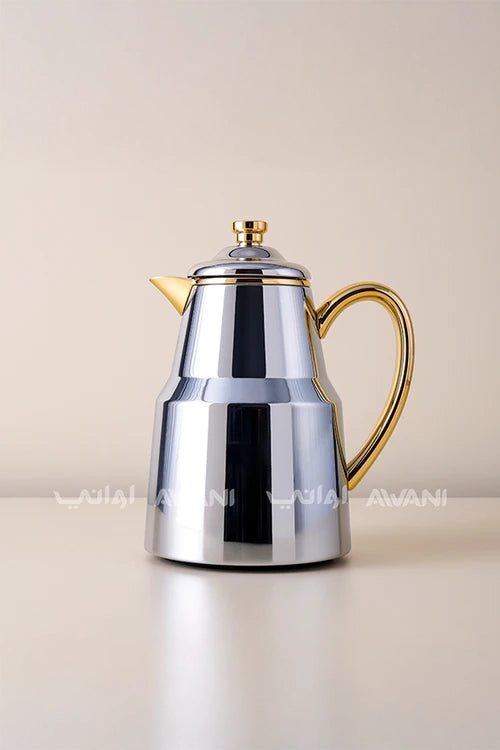 Serve your guests in timeless style with this premium stainless steel Arabic coffee dallah. Designed with a brilliant mirror finish and elegant gold-plated handle and spout, this dallah combines traditional Middle Eastern hospitality with modern sophistication. Crafted for both beauty and function, its heat-retaining body keeps your gahwa (Arabic coffee) warm for hours. Ideal for majlis gatherings, Eid celebrations, and daily use.