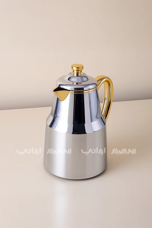 Stainless Steel Arabic Coffee Dallah with Silver and Gold Accents – 0.650 ML