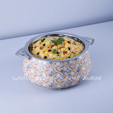 Bring warmth and color to your table with the Mirna 3.5L Insulated Hotpot Designed with a beautiful multicolor finish, this hotpot isn’t just practical. it’s a stylish centerpiece too. Made from high-quality food-grade stainless steel, it keeps your food hot, fresh, and full of flavor for hours. Whether it’s a family dinner or a festive get-together, this 3500 ML hotpot is the perfect companion for serving rice, curry, biryani, and more.