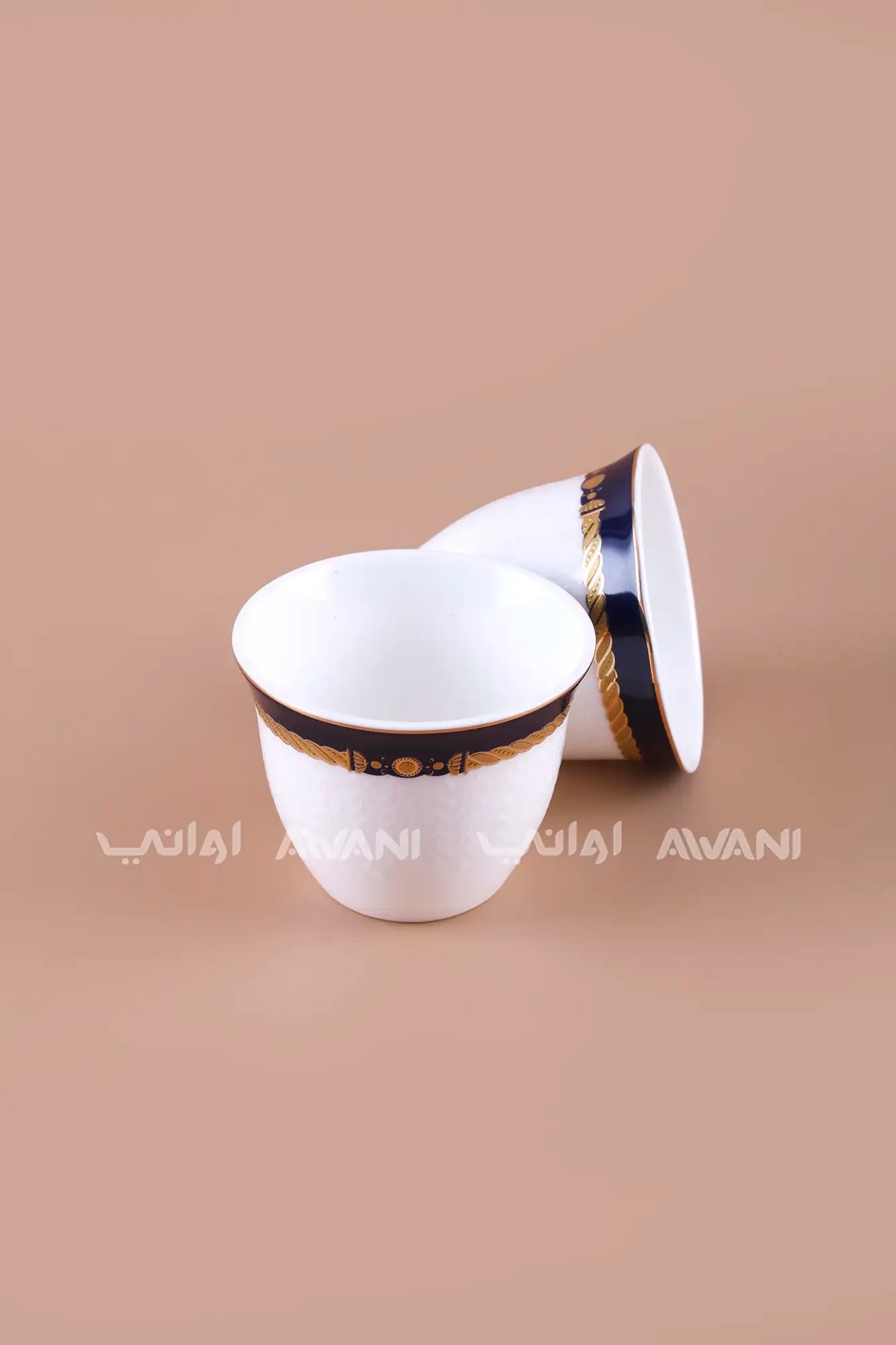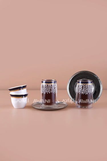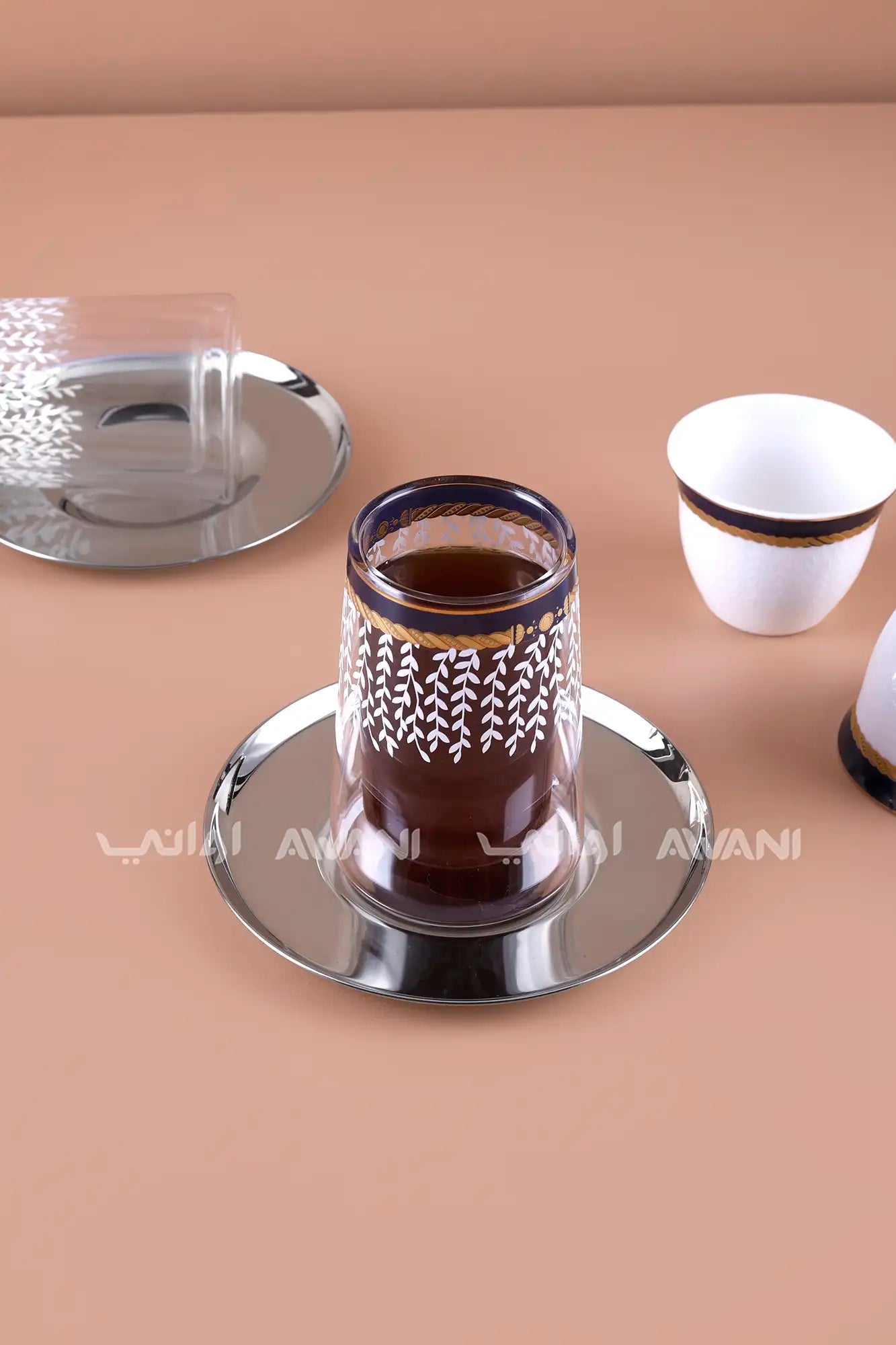 18-Piece Tea & Arabic Coffee Set – Navy, Gold, and White Leaf Design