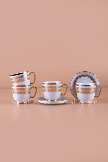 6-Piece Porcelain Coffee Cup and Saucer Set – Gold Rim