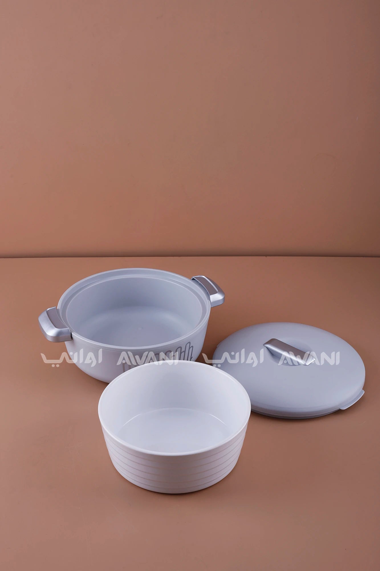 2.3L Round Ceramic Food Warmer with(Grey & White)