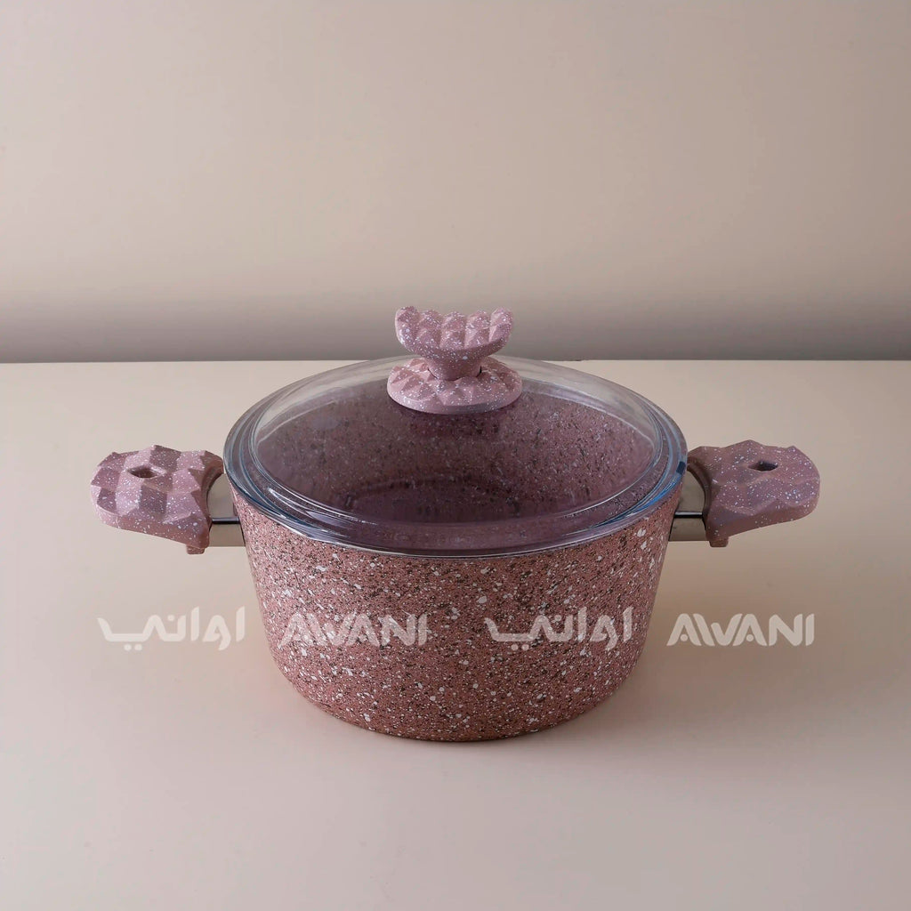Granite 22 CM Pink Casserole Non-Stick Cooking Pot with Glass Lid - Durable & Stylish