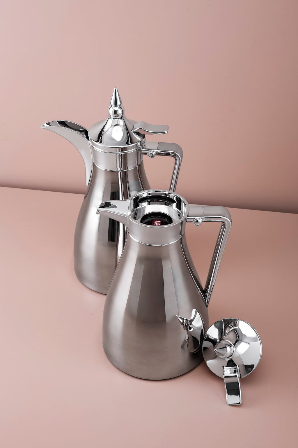 Elegant Arabic-inspired design with polished chrome lid and top finial