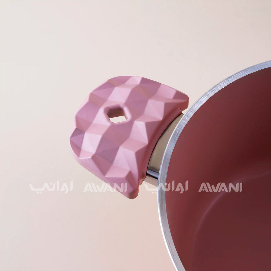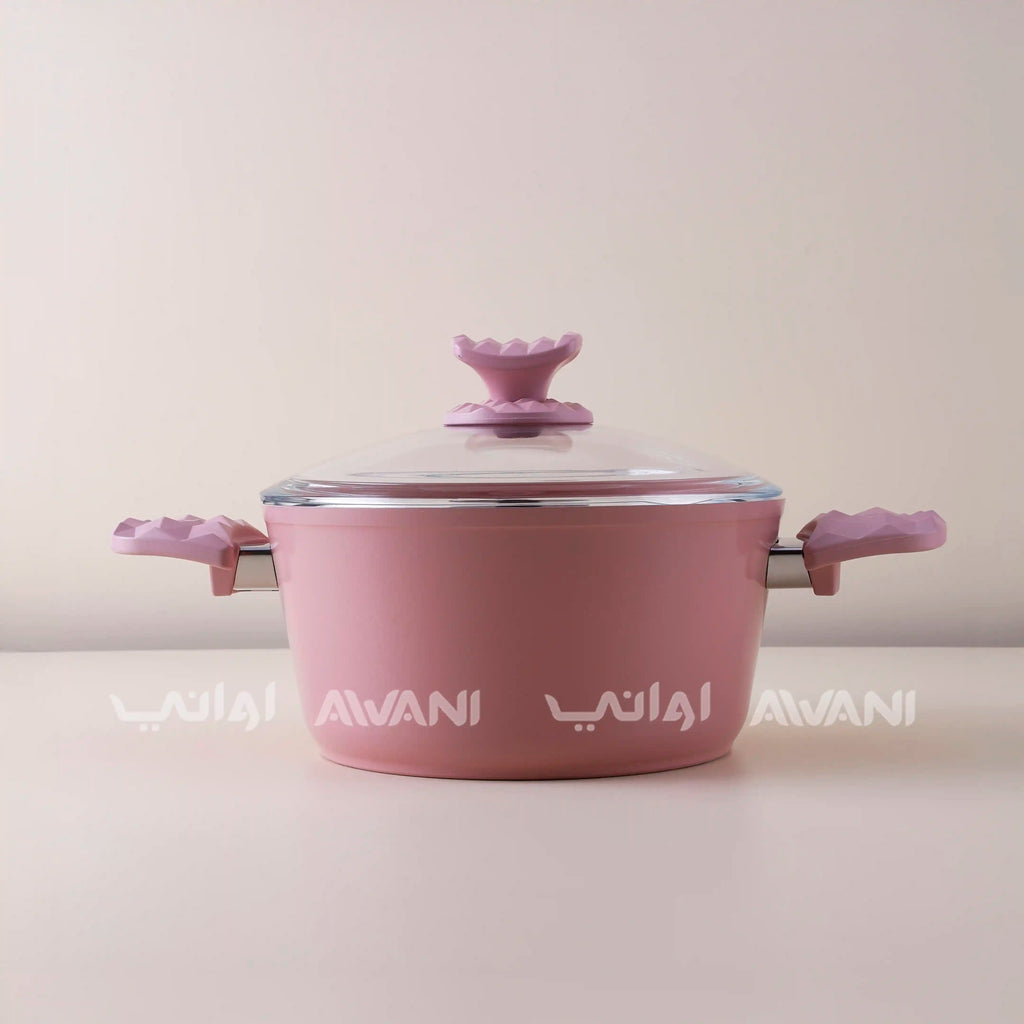Granite  26CM Pink Casserole Non-Stick Cooking Pot with Glass Lid - Durable & Stylish