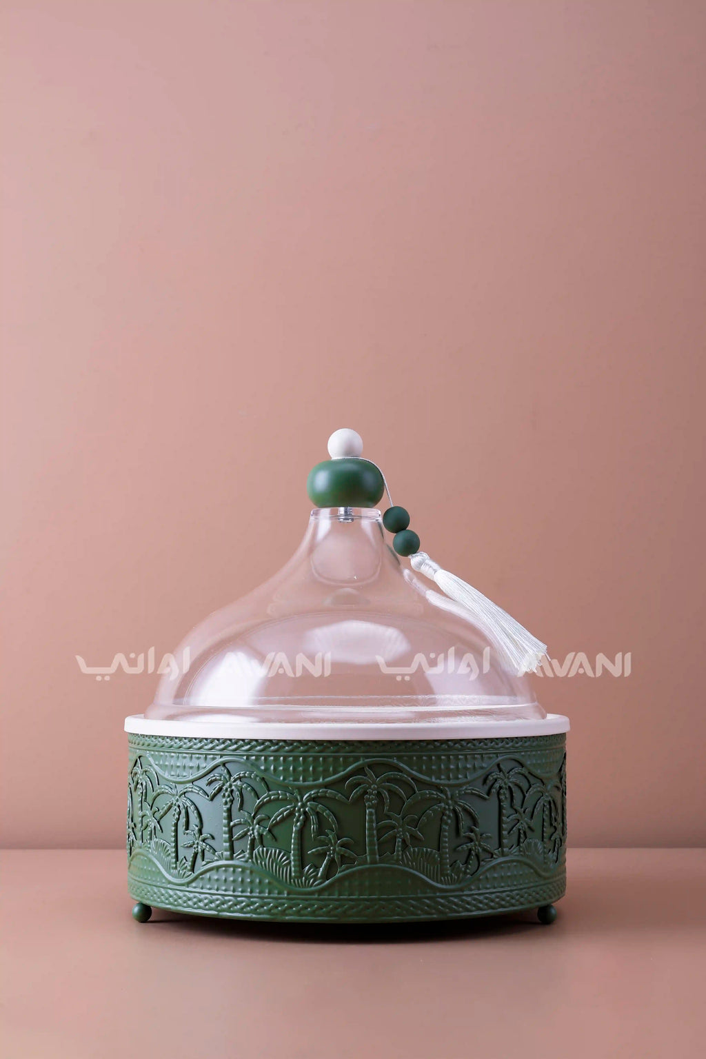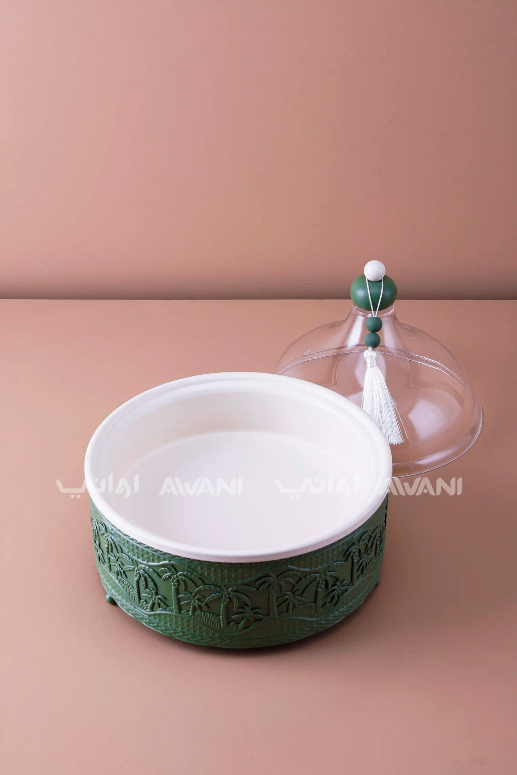 This medium-sized Dates Bowl features a vibrant green base complemented by a clear cover, combining aesthetic appeal with practical functionality. Designed to keep dates fresh while allowing easy visibility, it is perfect for serving or storage. The clear cover ensures protection from dust and maintains the fruit’s natural flavor, making it an ideal choice for both everyday use and special occasions. Its medium size fits comfortably on any table or countertop, adding a touch of elegance to your presentation.