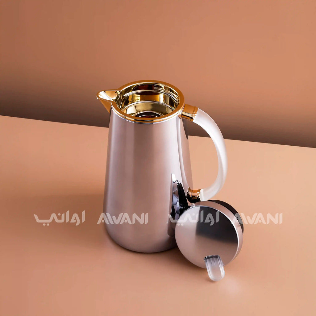 Keep your beverages hot or cold for hours with this sleek stainless steel thermal flask. Designed with a durable double-wall vacuum insulation, it preserves the temperature of your coffee, tea, or water throughout the day. The ergonomic handle ensures a comfortable grip, while the spill-proof lid makes pouring easy and mess-free. Perfect for home, office, or gatherings, this stylish flask combines modern design with practical functionality.