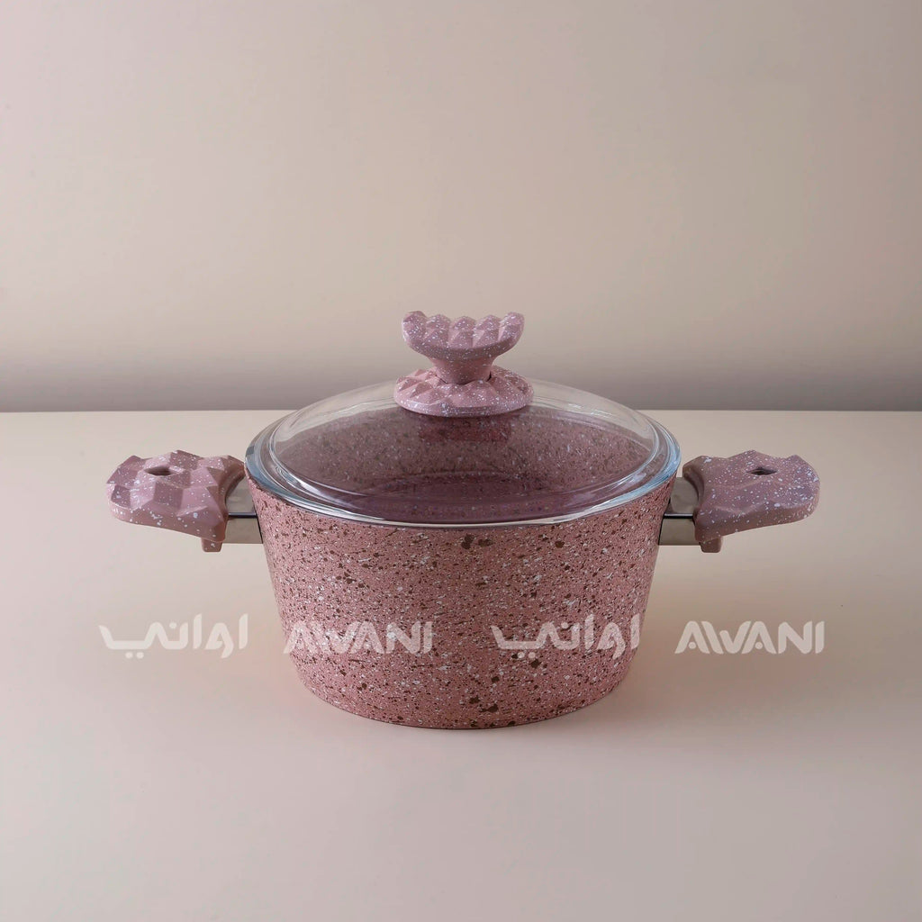 Granite 20 CM Pink Casserole Non-Stick Cooking Pot with Glass Lid - Durable & Stylish