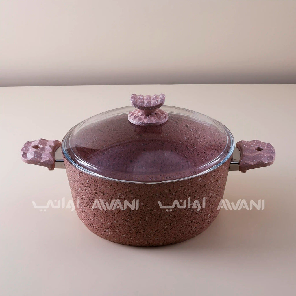 Granite 28 CM Pink Casserole Non-Stick Cooking Pot with Glass Lid - Durable & Stylish