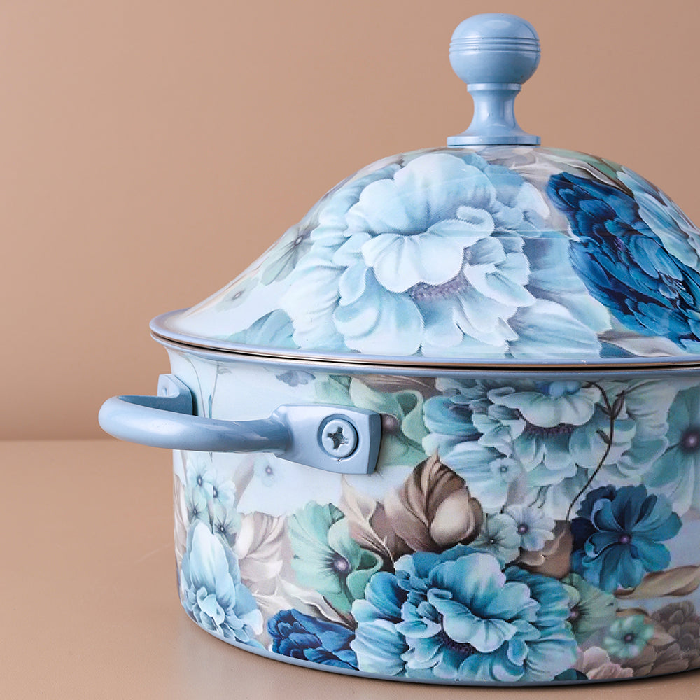Blue Flower Hot Pot with Lid 1500 ML- Fancy Design