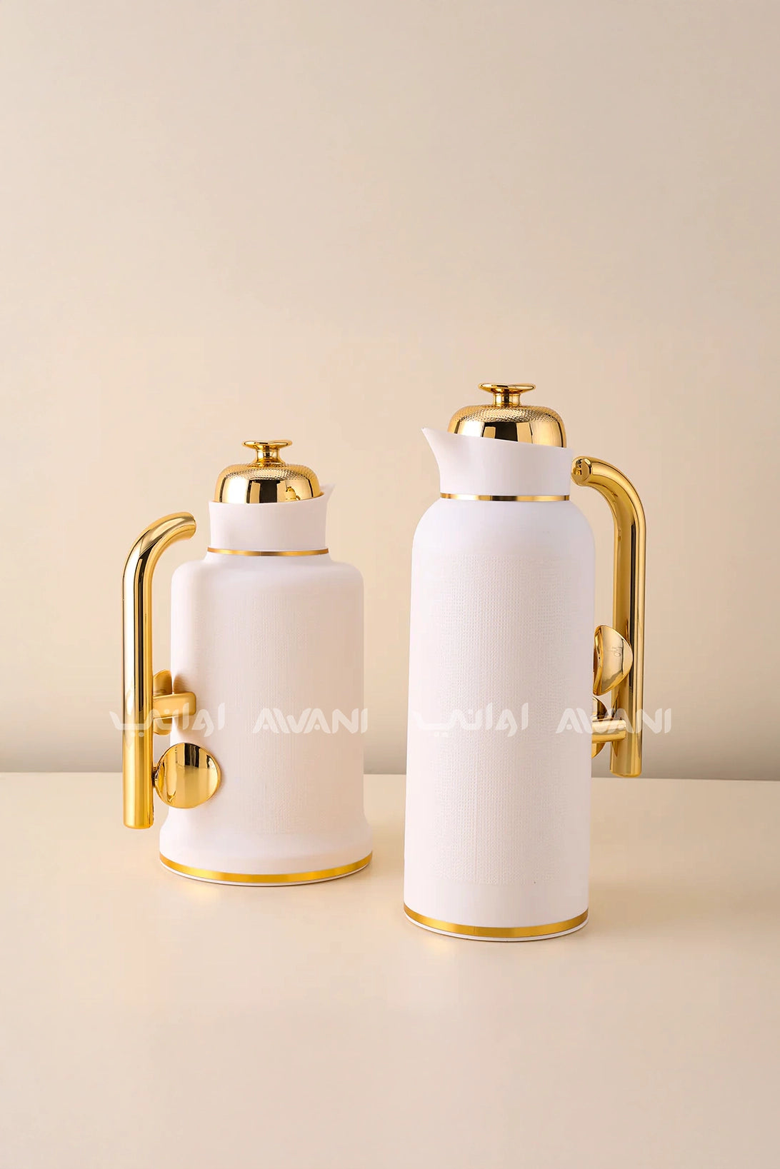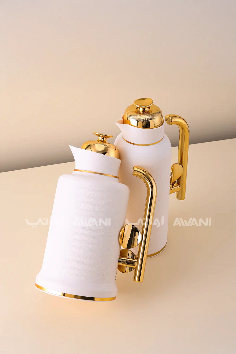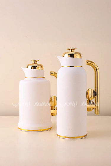 Introducing the "Legend Dallah Duo Set"—a pair of premium insulated flasks designed to elevate your coffee and tea experience. This set includes two flasks with capacities of 1 liter and 1 liters, respectively, making it perfect for serving beverages at gatherings or daily use. Crafted with a stainless steel exterior, these flasks ensure your drinks stay hot for up to 12 hours.