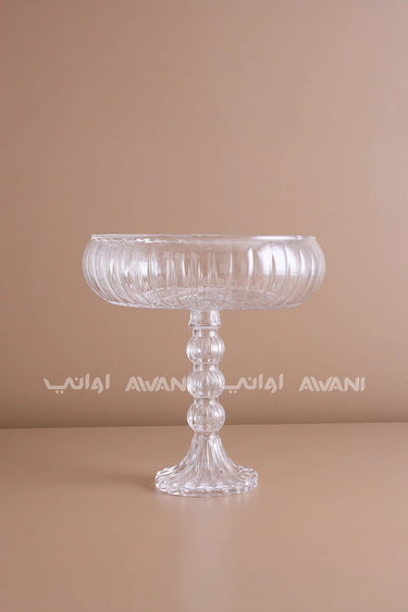 Elevate your table with this elegant crystal glass pedestal bowl. Its intricate design and sturdy base make it perfect for serving desserts, fruits, or as a stylish décor piece. A timeless addition to any occasion!