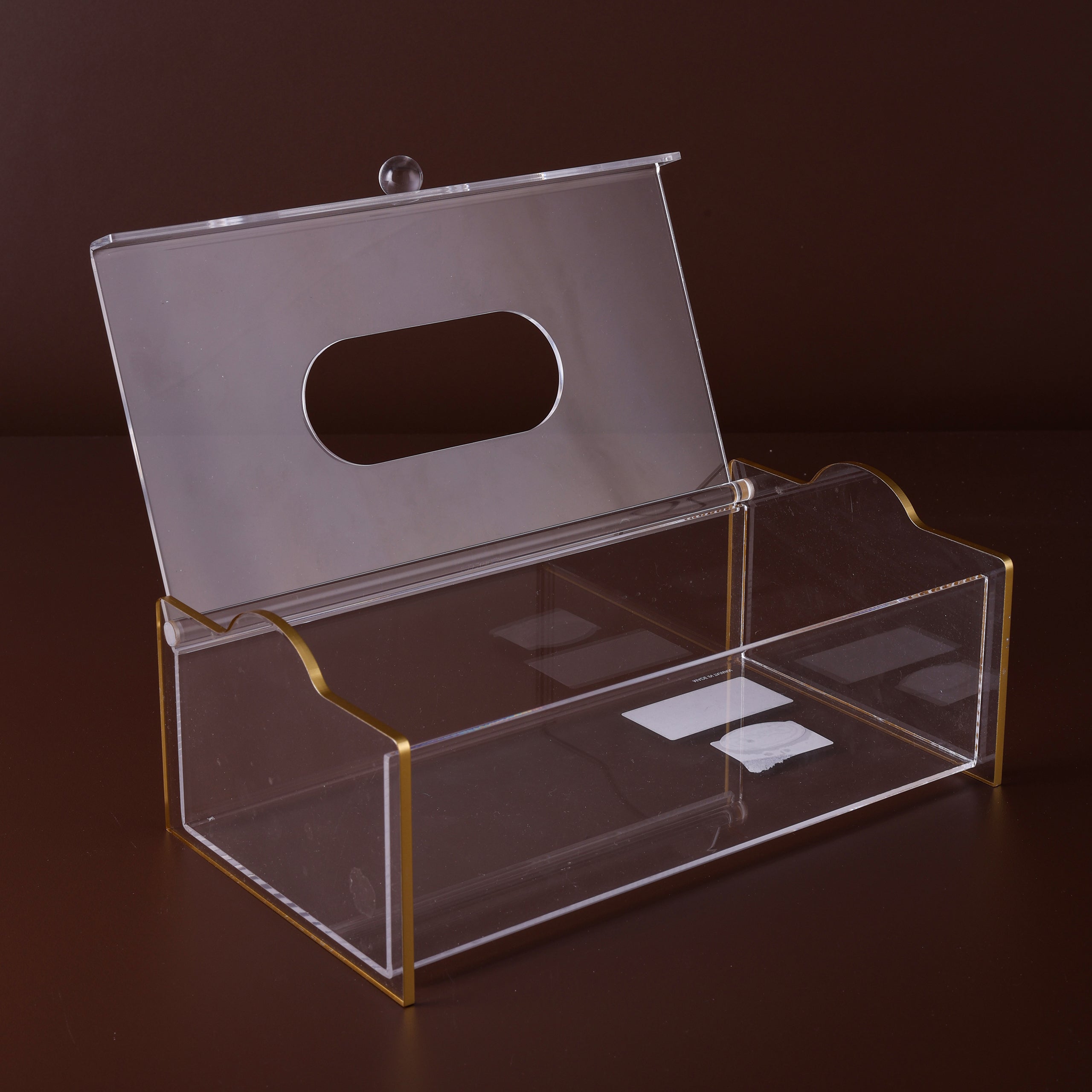 Plain and Gold Line Tissue Holder Box, Tissue Box - Rectangular Napkin Holder, Clear Box Cover Facial Tissue Dispenser,