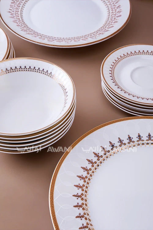 • Elegant Gold Trim: Features a sophisticated gold geometric pattern that adds a luxurious touch to your table setting.