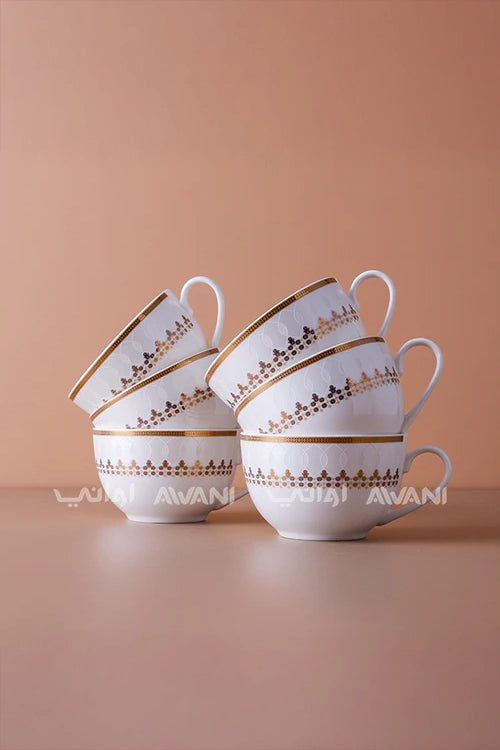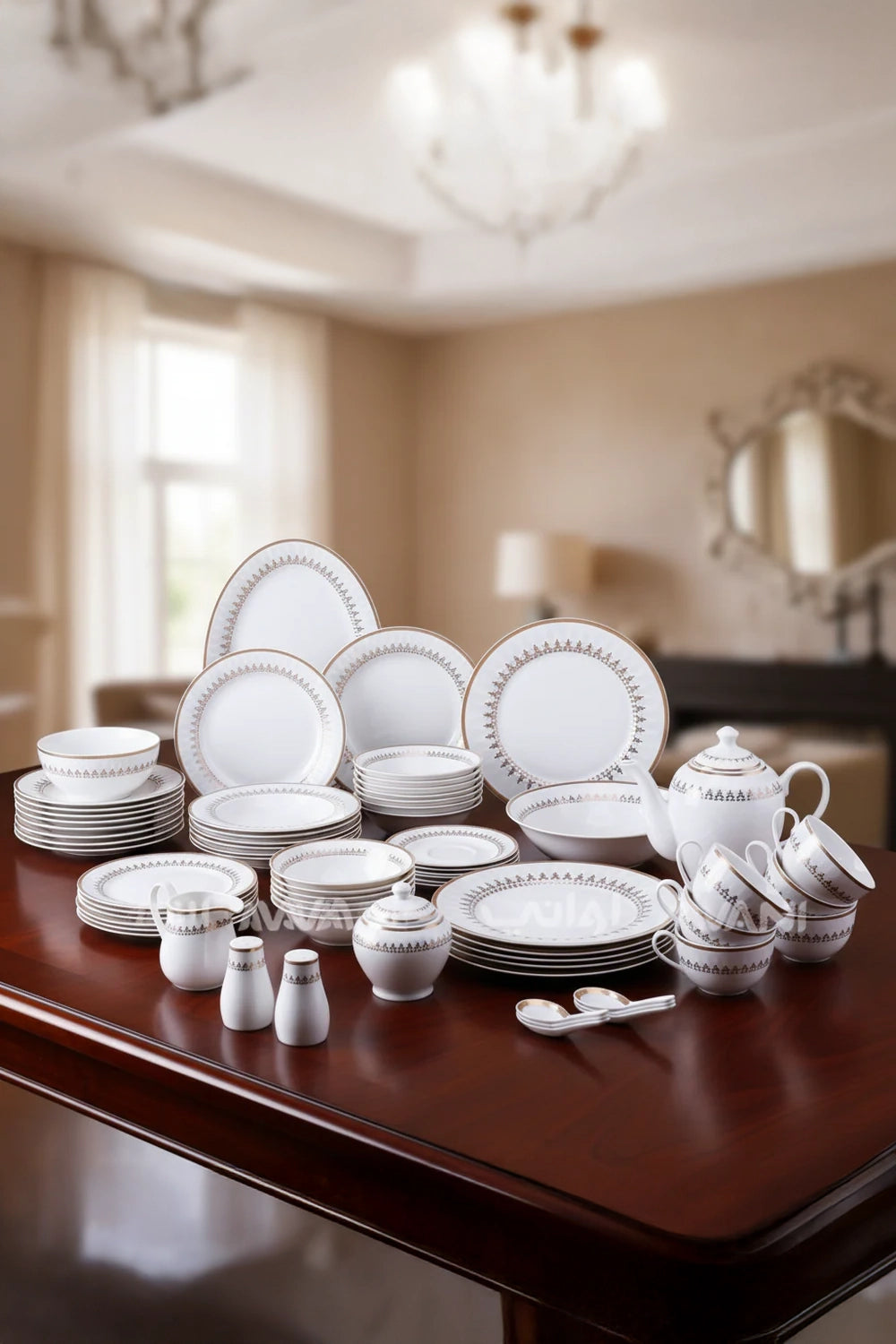Elevate your dining experience with this exquisite 51-piece white porcelain dinnerware set, beautifully adorned with intricate gold trim. Perfect for both everyday meals and special occasions, this comprehensive collection includes everything you need to host in style. From dinner plates and soup bowls to a full tea set with teapot, teacups, and saucers, each piece combines classic elegance with durable craftsmanship. The delicate gold pattern adds a touch of sophistication, making every meal a luxurious affair.
