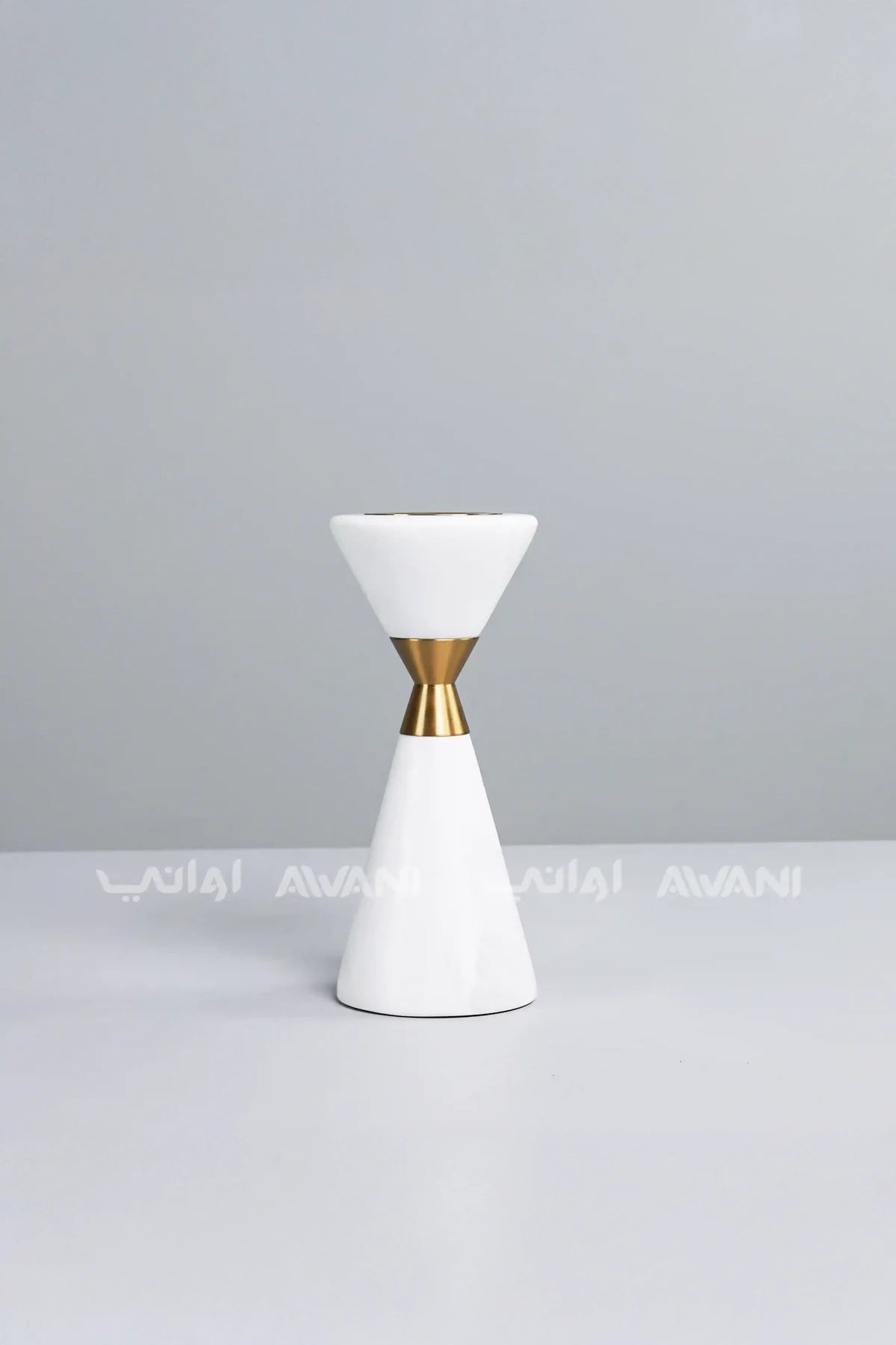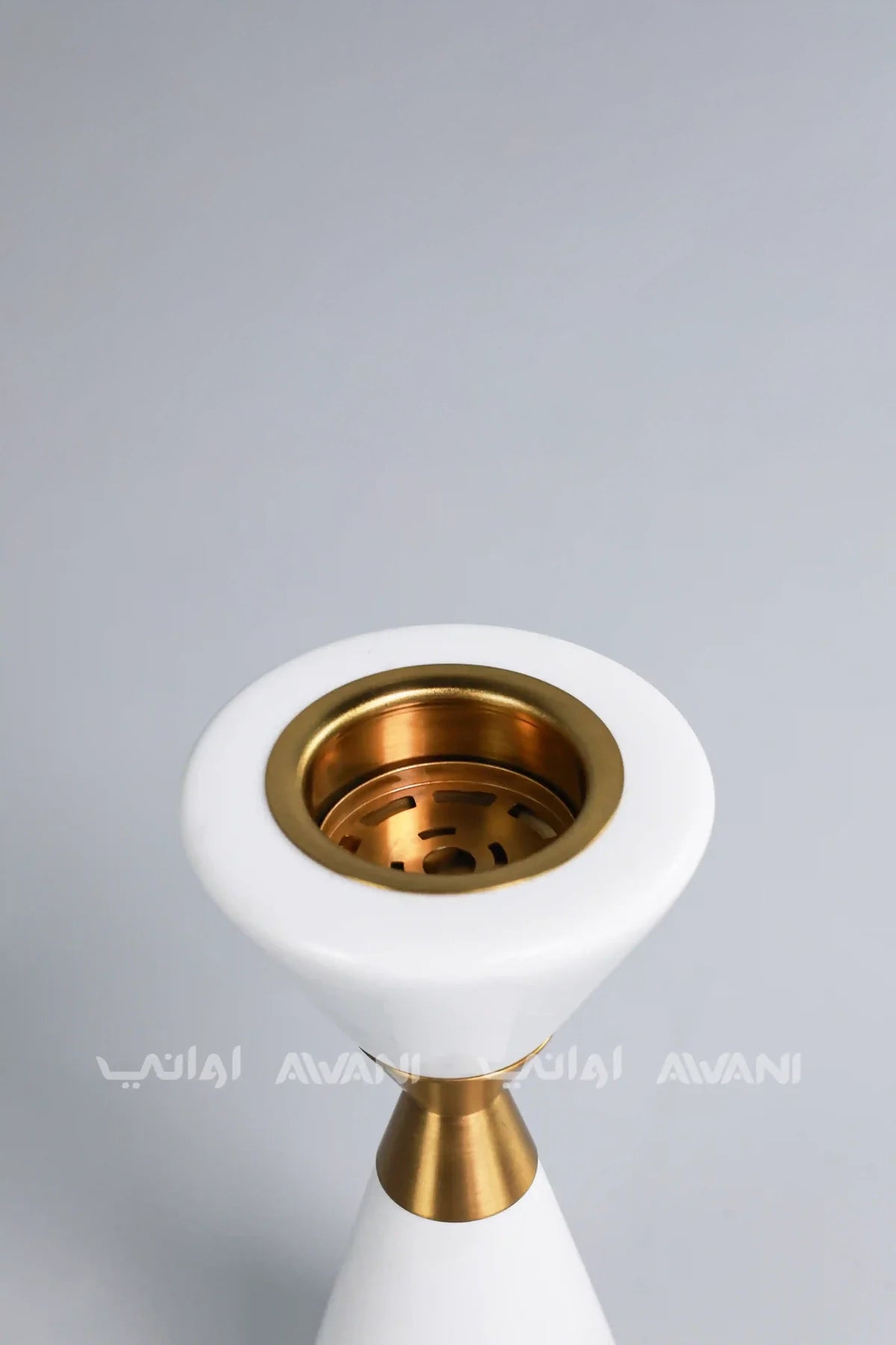 • Elegant Design: A sophisticated blend of crisp white ceramic and lustrous gold accents, forming a stylish hourglass silhouette.