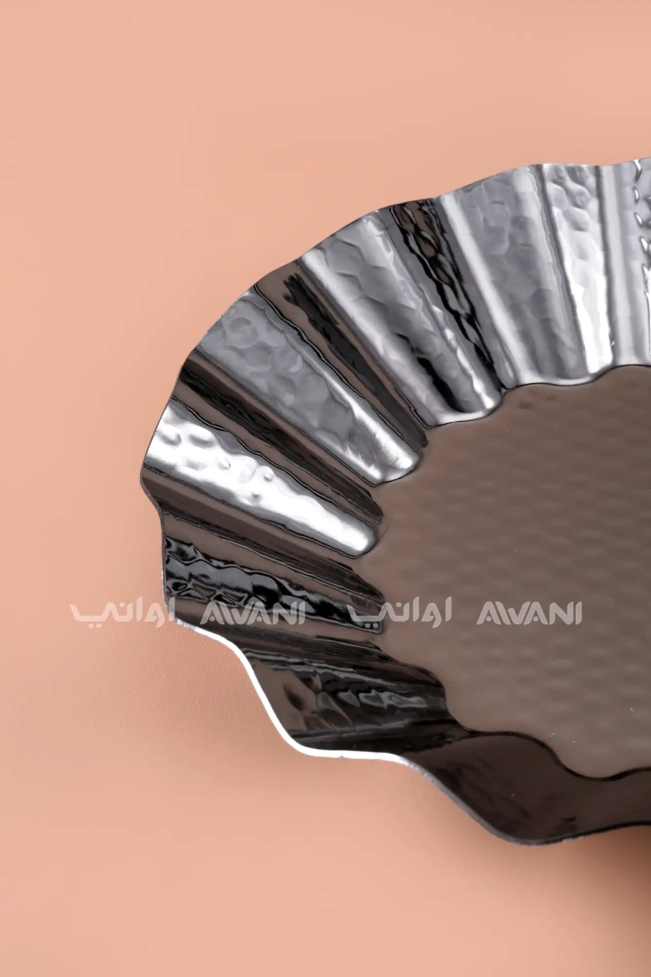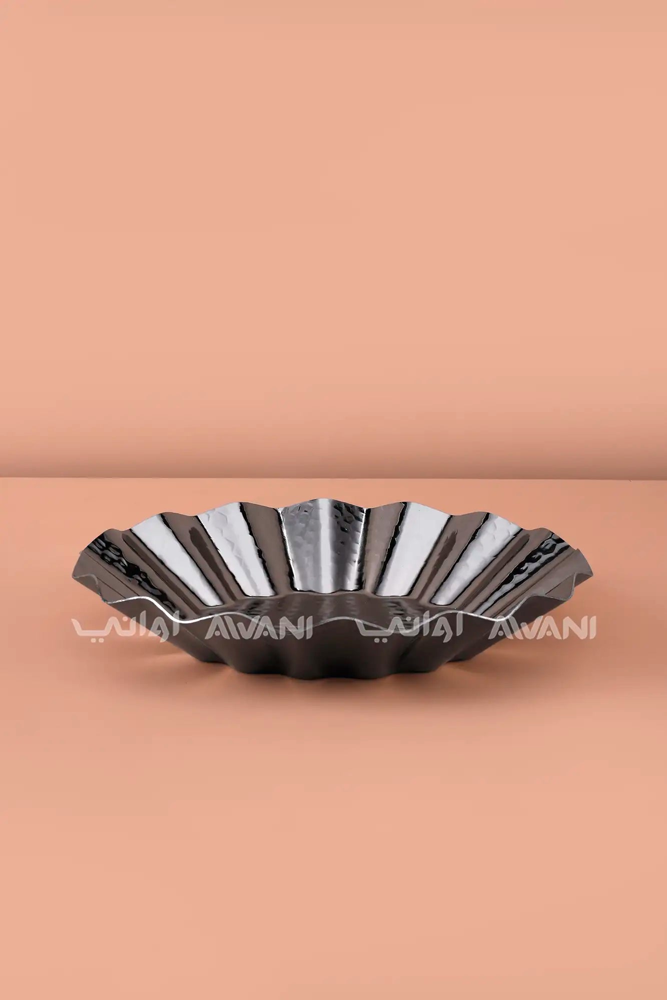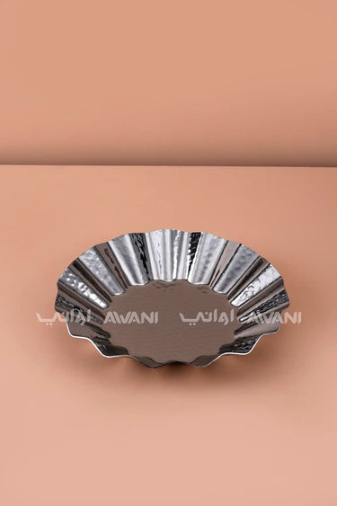 Fluted Serving Bowl / Decorative Centerpiece Plate - Black Silver
