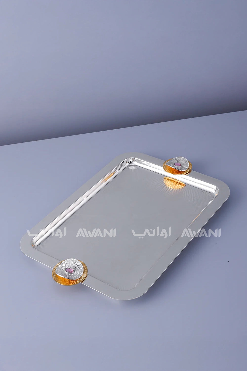 Silver Edge Rectangle & Round Handle Serving Tray Set – Silver & Gold Design