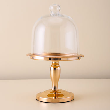 Elevate your cake presentation with this expertly crafted steel stand featuring a sleek gold finish and a clear cover. Designed for both display and protection, it keeps your cakes fresh while showcasing them elegantly. Its sturdy construction ensures stability, making it ideal for professional bakers and enthusiasts alike.