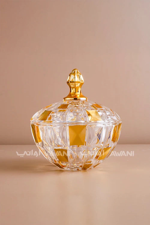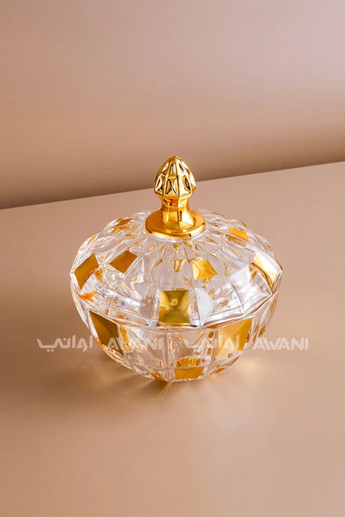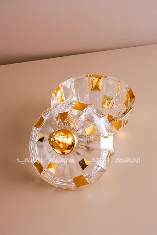 Luxury Crystal Gold and Clear Candy Jar with Golden Lid