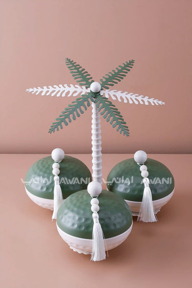 Palm Tree Ceramic Snack Server with Green Lids