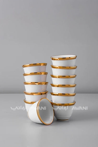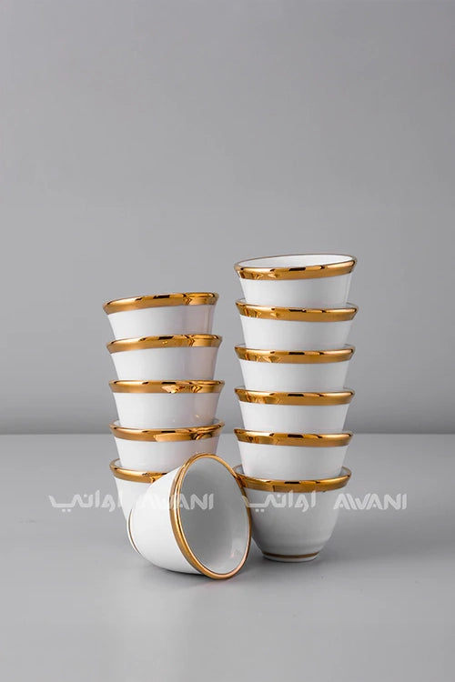 Enhance your traditional Arabic coffee experience with our Cawa Elegance cup set. Each set includes 12 cups with a luxurious gold rim top and bottom. Elevate your coffee serving game and impress your guests with this elegant and sophisticated addition to your collection.