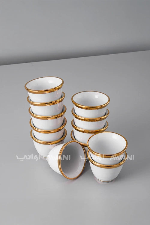 Cawa Elegance: 12-Piece Arabic Cawa Cup Set with Gold Rim Top and Bottom