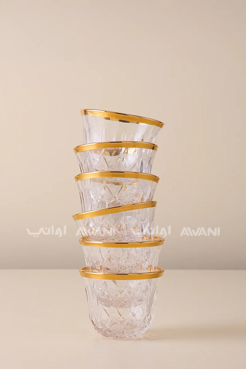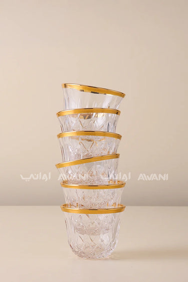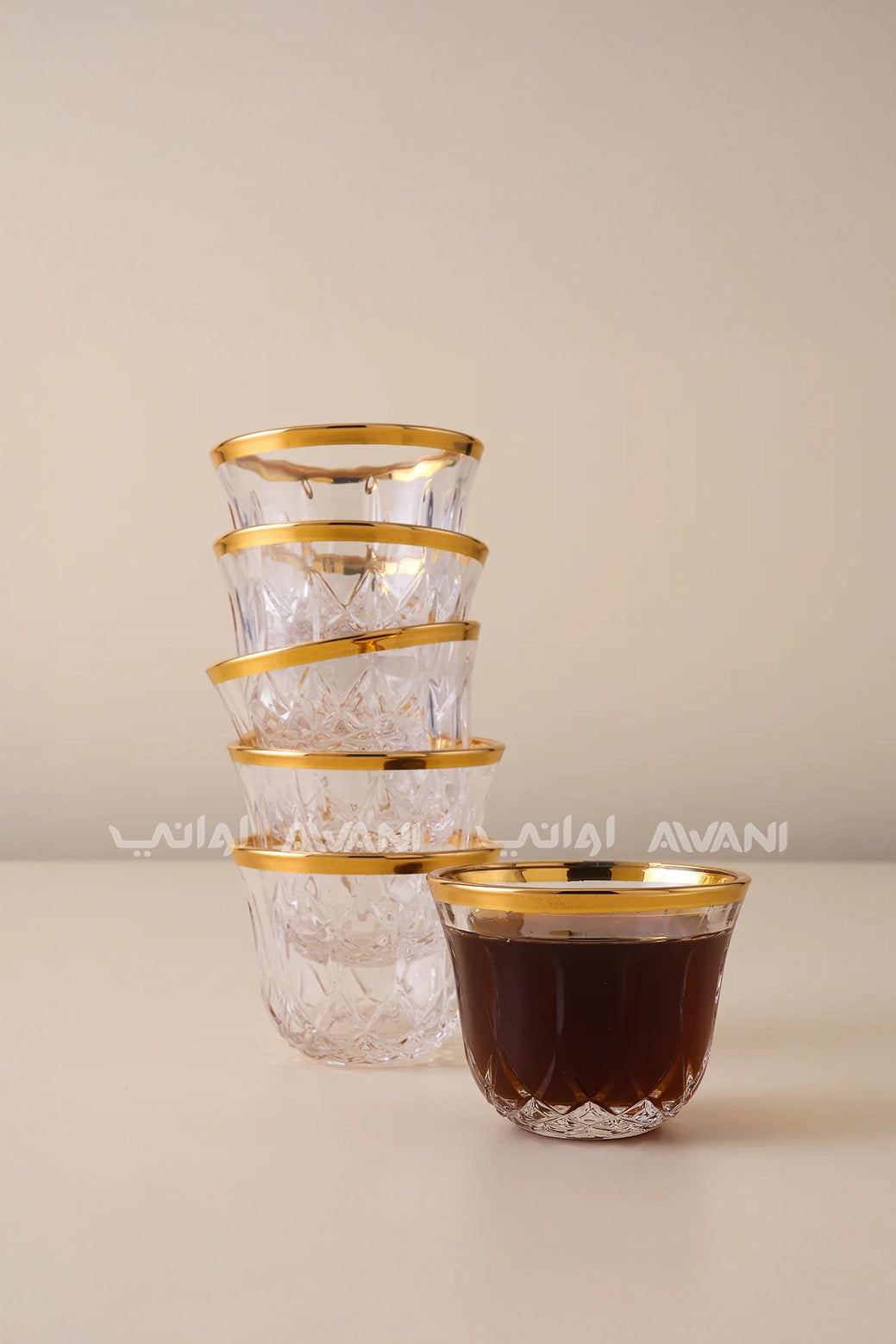 Elevate your traditional coffee ritual with this sophisticated Glass Cawa Cup Set, featuring an elegant gold design that brings timeless refinement to every serving. Crafted from durable glass, this set combines authentic Middle Eastern aesthetics with practical functionality. The gold accents add a luxurious touch, making it ideal for both daily enjoyment and special occasions. Perfect for serving Arabic coffee with style, this set captures the essence of hospitality while maintaining contemporary elegance. A distinguished addition to any home or café setting.