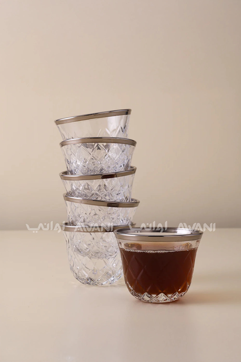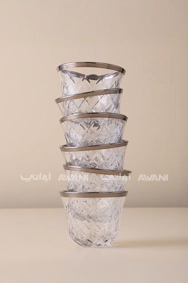 Elevate your traditional coffee ritual with this sophisticated Glass Cawa Cup Set, featuring an elegant matt silver finish and distinctive cross design at the base. Crafted from durable glass, each cup combines timeless aesthetics with practical functionality, perfect for serving Arabic coffee with style. The refined matte coating reduces glare while maintaining clarity, allowing you to appreciate the rich color of your beverage. Ideal for both everyday enjoyment and special occasions, this set brings authentic charm to your table while reflecting contemporary design sensibilities.