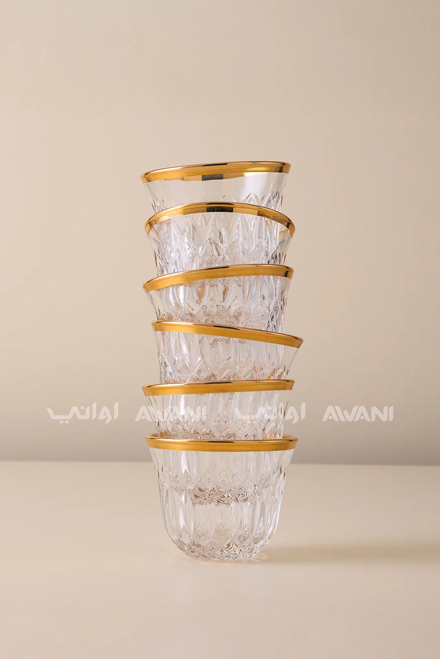 Elevate your traditional coffee ritual with this sophisticated Glass Cawa Cup Set, featuring an elegant gold rim that adds a touch of luxury to every serving. Crafted from durable glass, these cups showcase refined design details that complement both contemporary and classic interiors. Perfect for serving Arabic coffee or specialty beverages, the set combines functionality with aesthetic appeal. The gold-trimmed finish catches light beautifully, making each cup a statement piece. Ideal for entertaining guests or enhancing your daily coffee experience with timeless elegance.