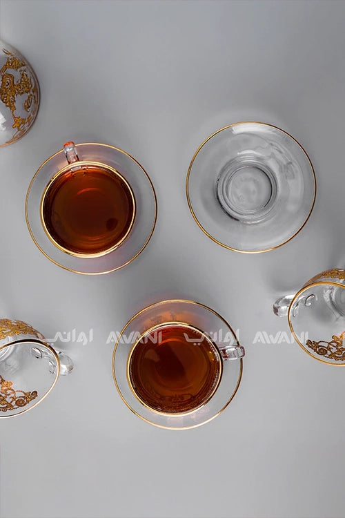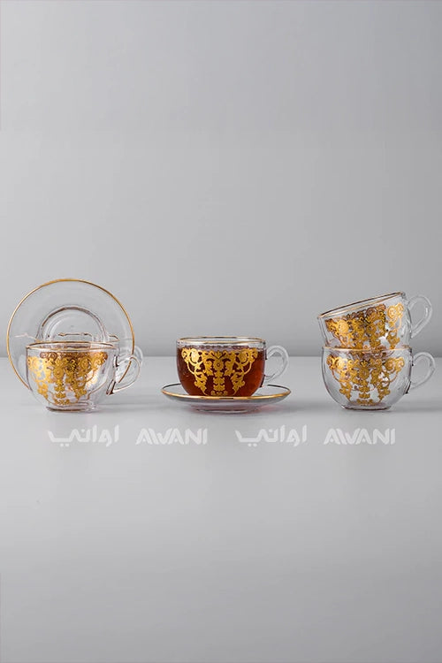 Tea Glass & Saucer Set - Milk Tea Glasses - Clear Gold Elegance | Sticker