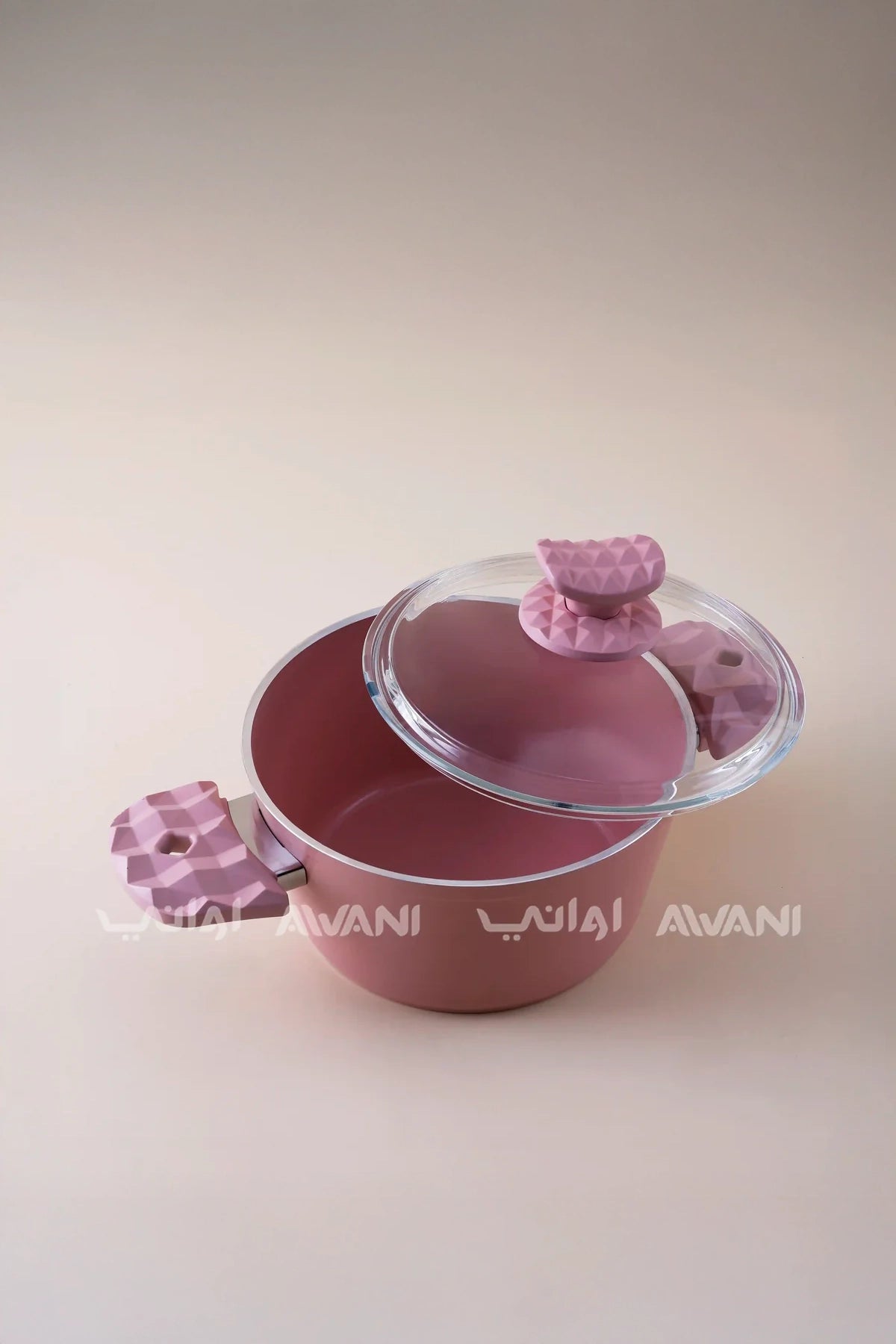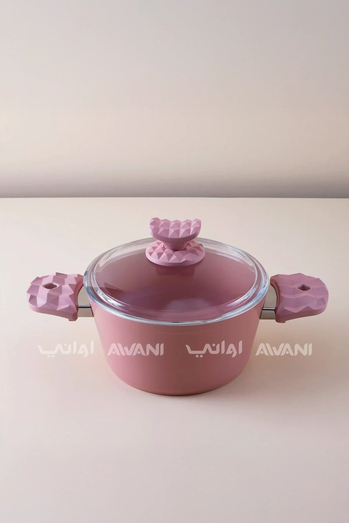 20 CM Pink Casserole Non-Stick Cooking Pot with Glass Lid - Durable & Stylish