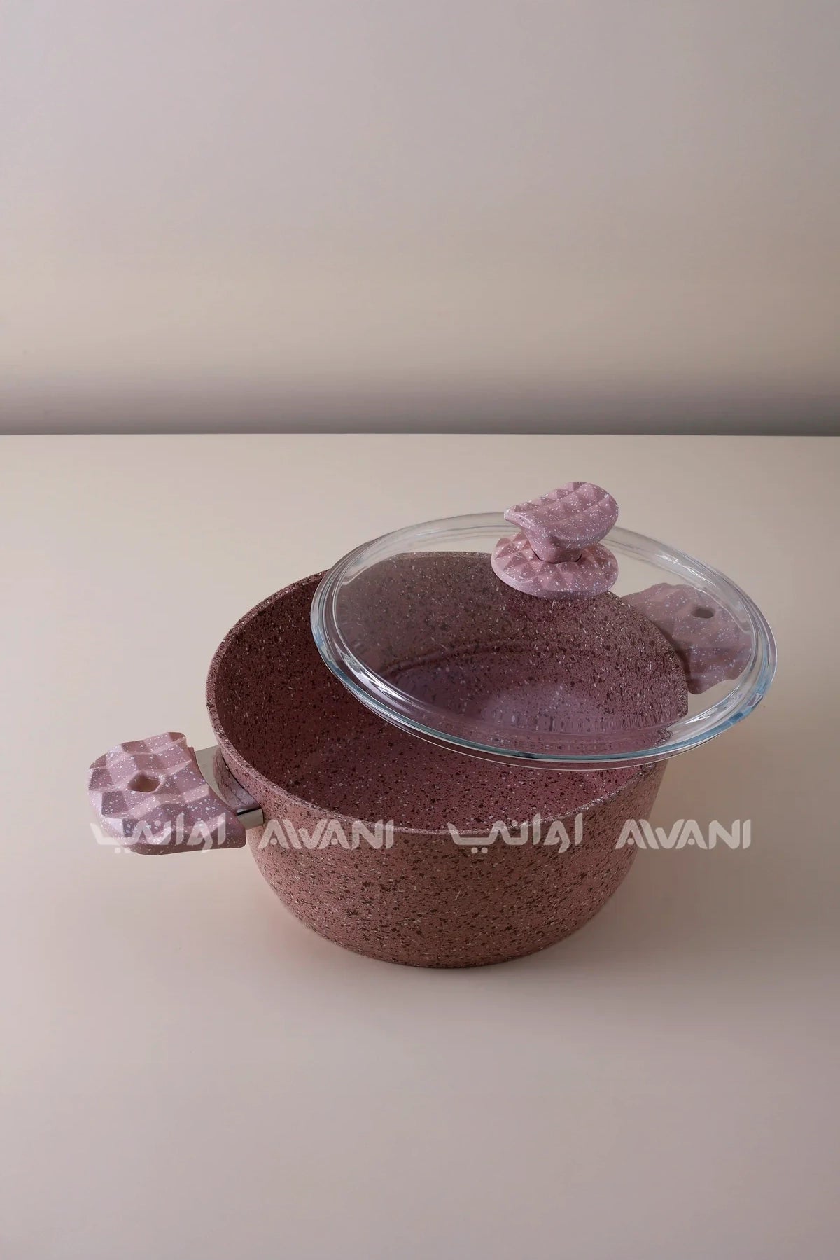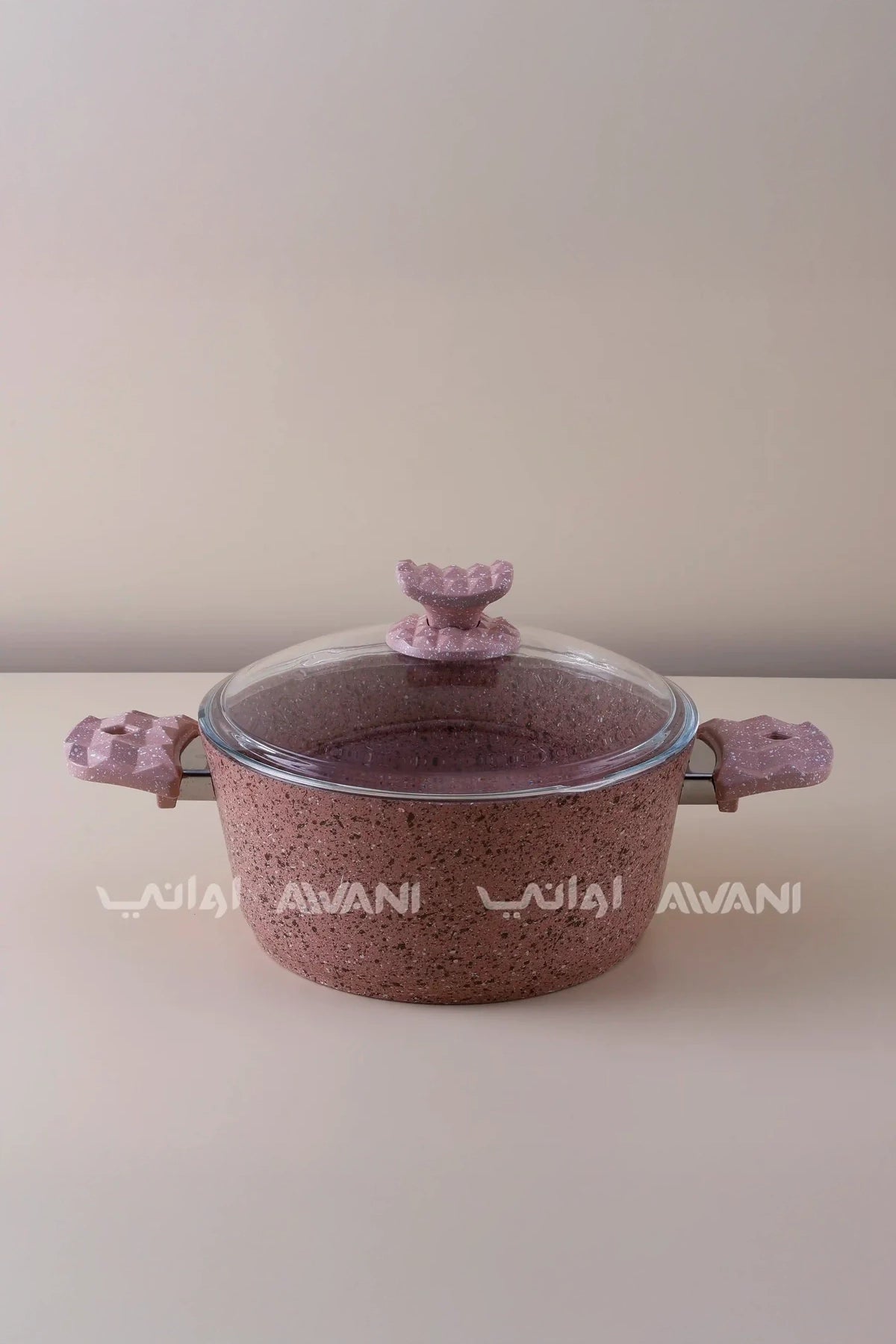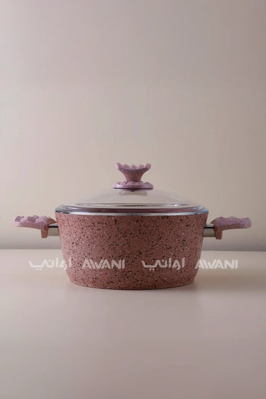Granite 24CM Pink Casserole Non-Stick Cooking Pot with Glass Lid - Durable & Stylish