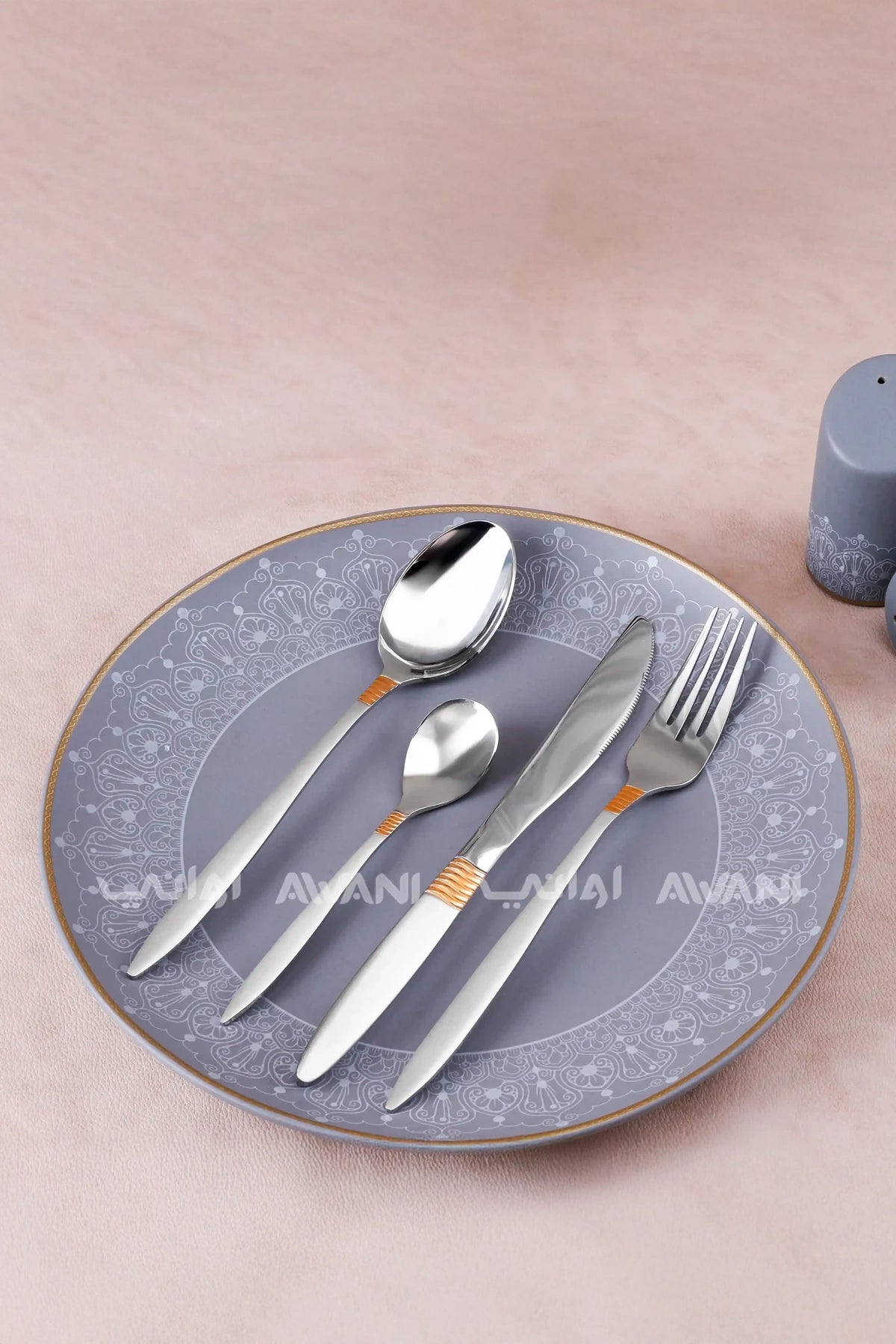 Premium 26-piece stainless steel cutlery set with mirror finish.