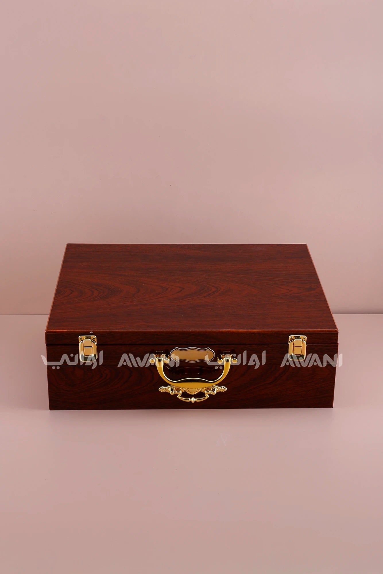 Elegant Wooden Case: 2-tier mahogany-style box with drawer.