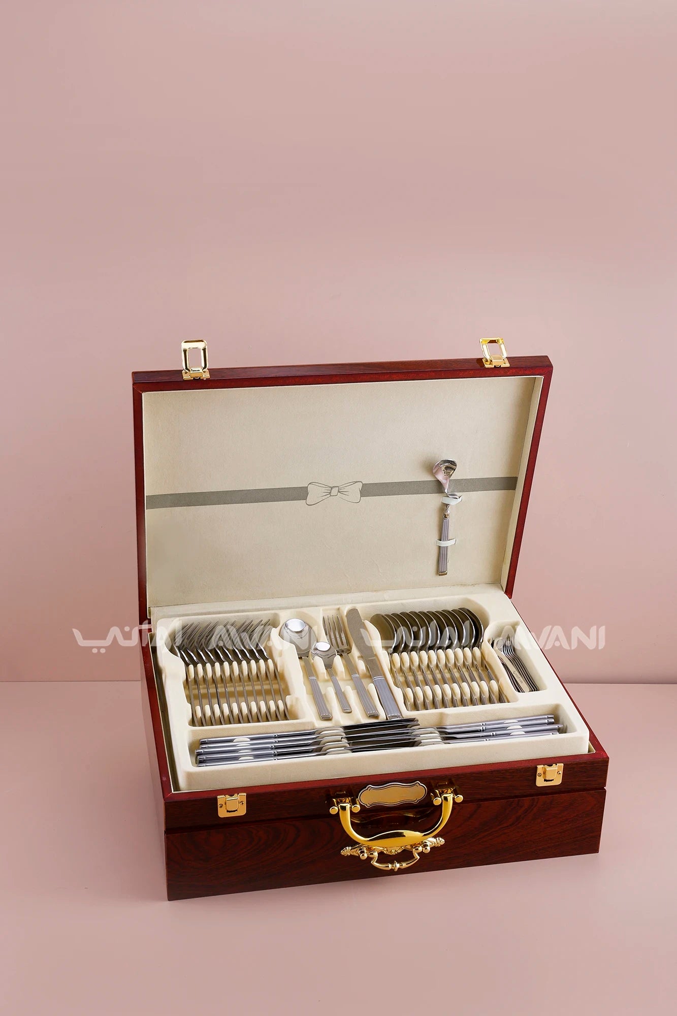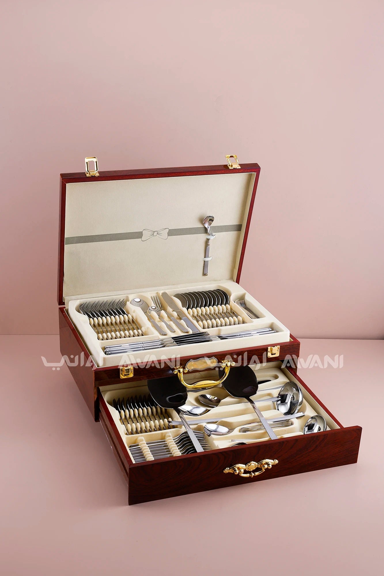86-Piece Stainless Steel Cutlery Set with Wooden Case