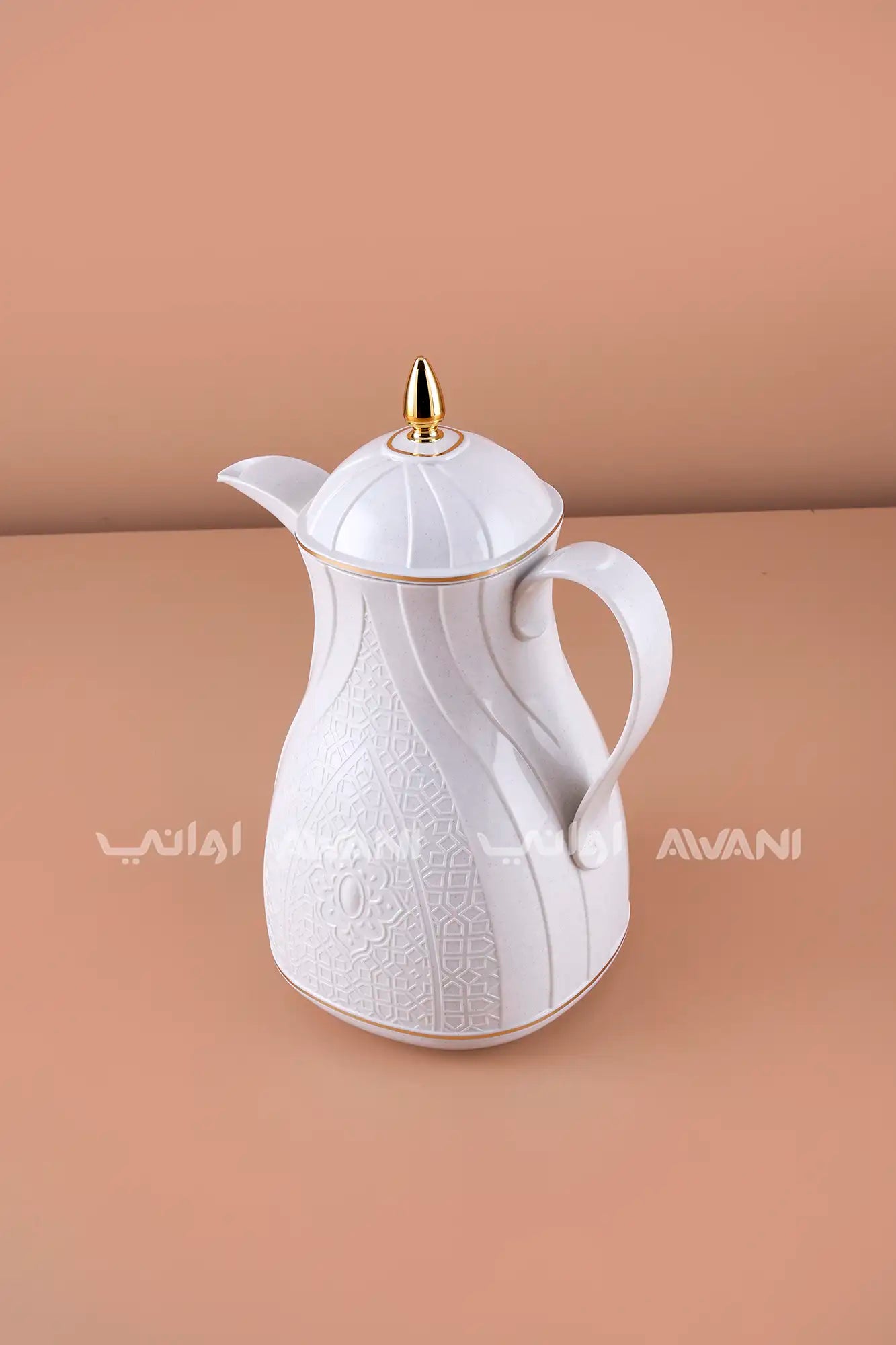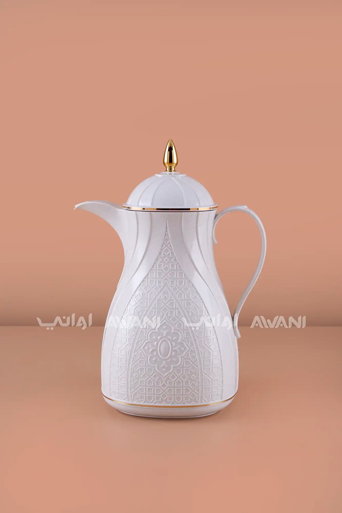 Rose Thermal Flask Set (1 L) – Insulated Coffee Dallah Lite Gray with Gold Accents