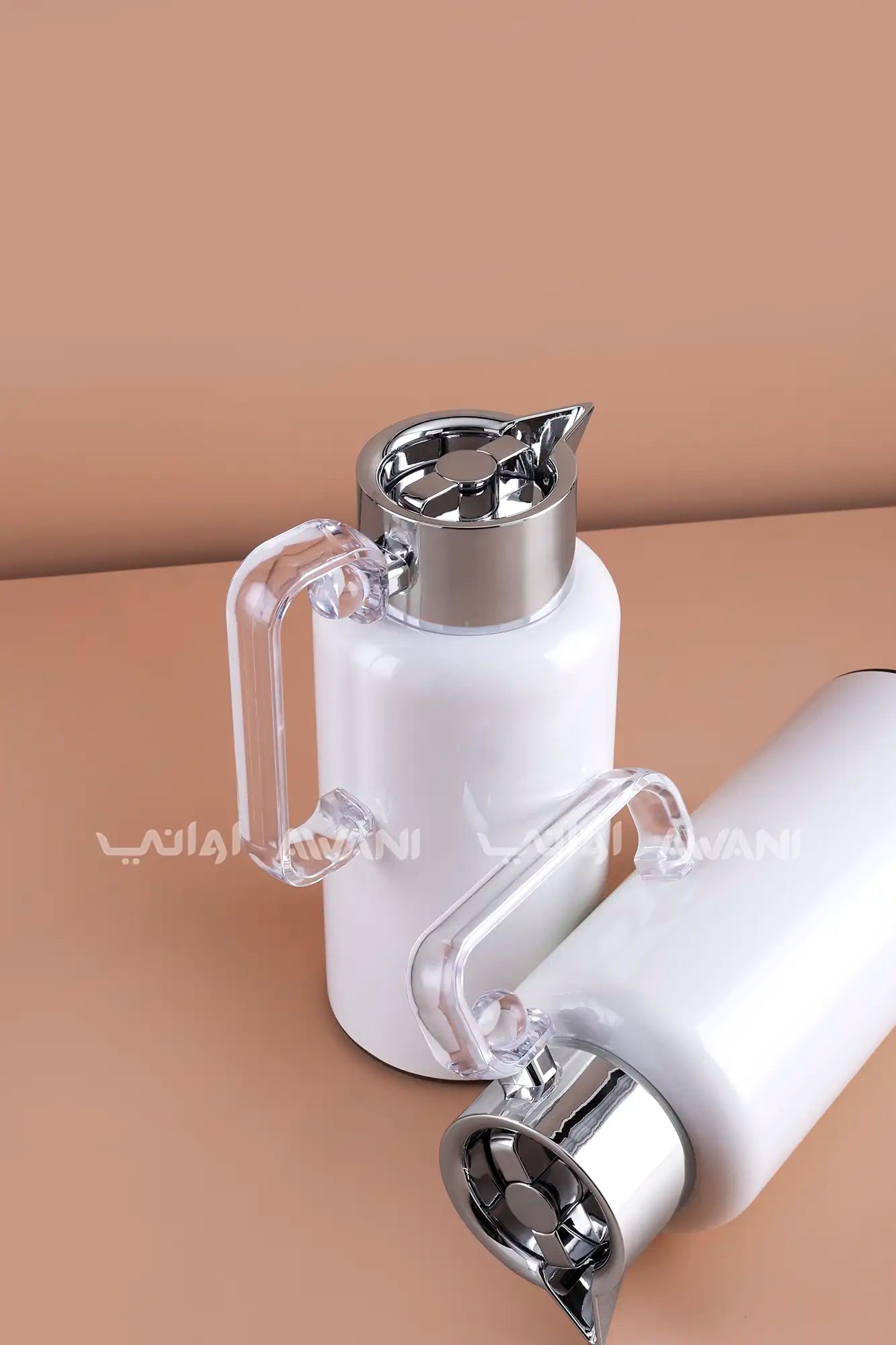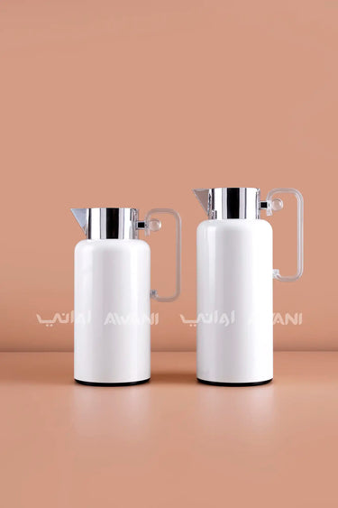 Elegant Design: Stylish white body with blue floral print and silver-finish top.