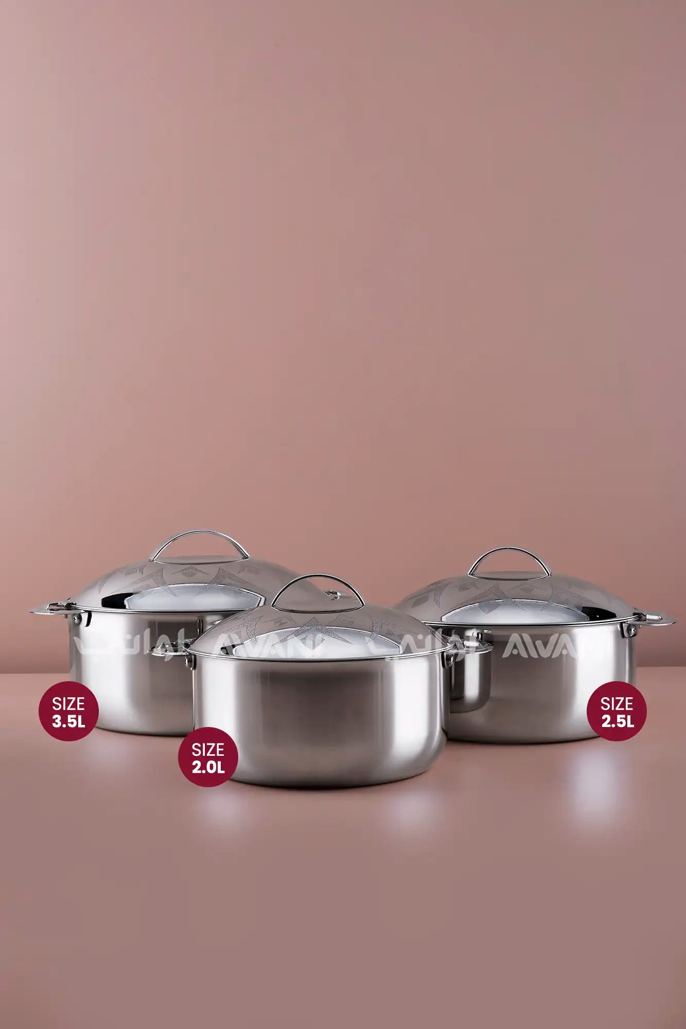 3-Piece Silver Stainless Steel Hot Pot Set – 2/2.5/3.5