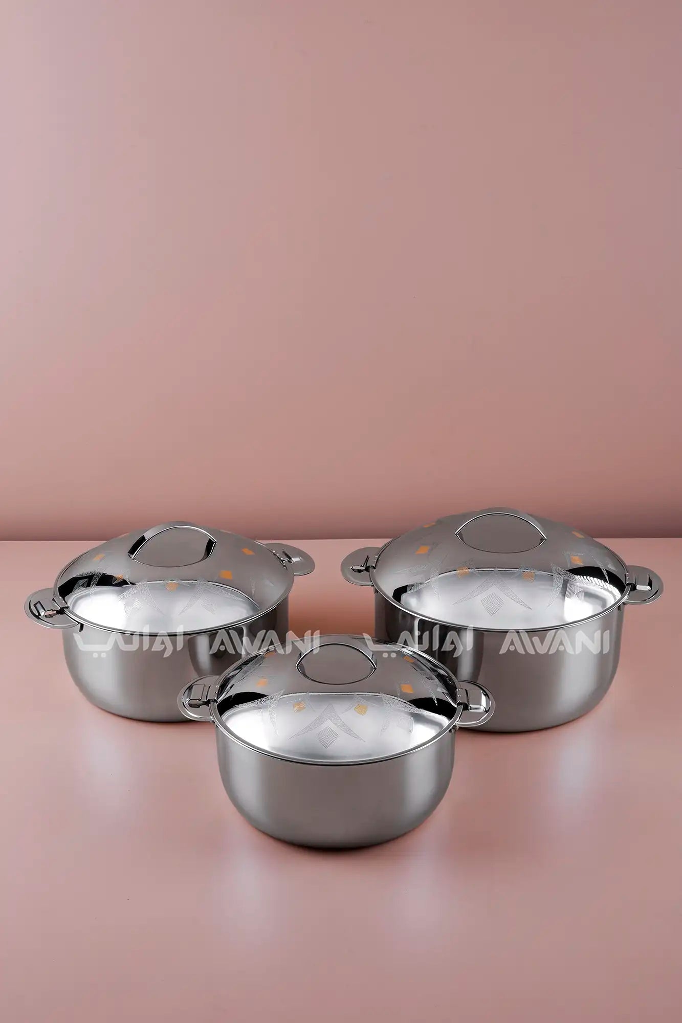 3-Piece Silver & Gold Stainless Steel Hot Pot Set – 2.5/3.5/5