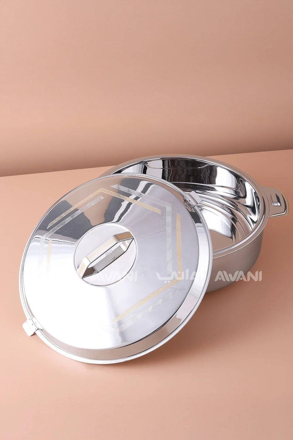 The Silver & Gold Hotpot Stainless Steel Casserole is the perfect solution for keeping your food hot for a long time. Its thermal serving bowl design traps in heat, ensuring your food stays warm and delicious. Available in various sizes, from 1200 ML to 8000 ML, this casserole is a must-have for any kitchen.