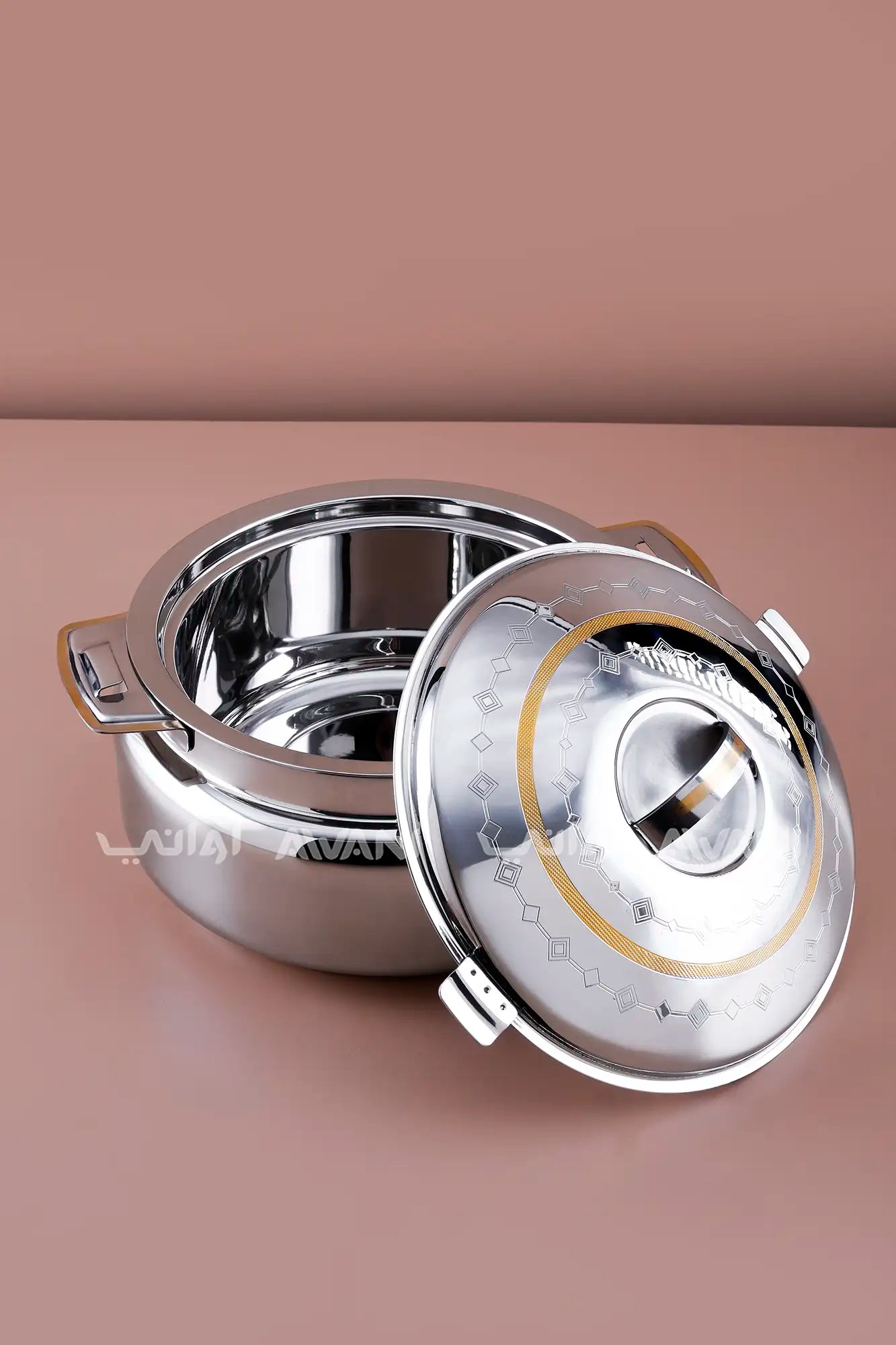 Stainless Steel Serving Pot (Gold & Silver Design) - 2500 ML