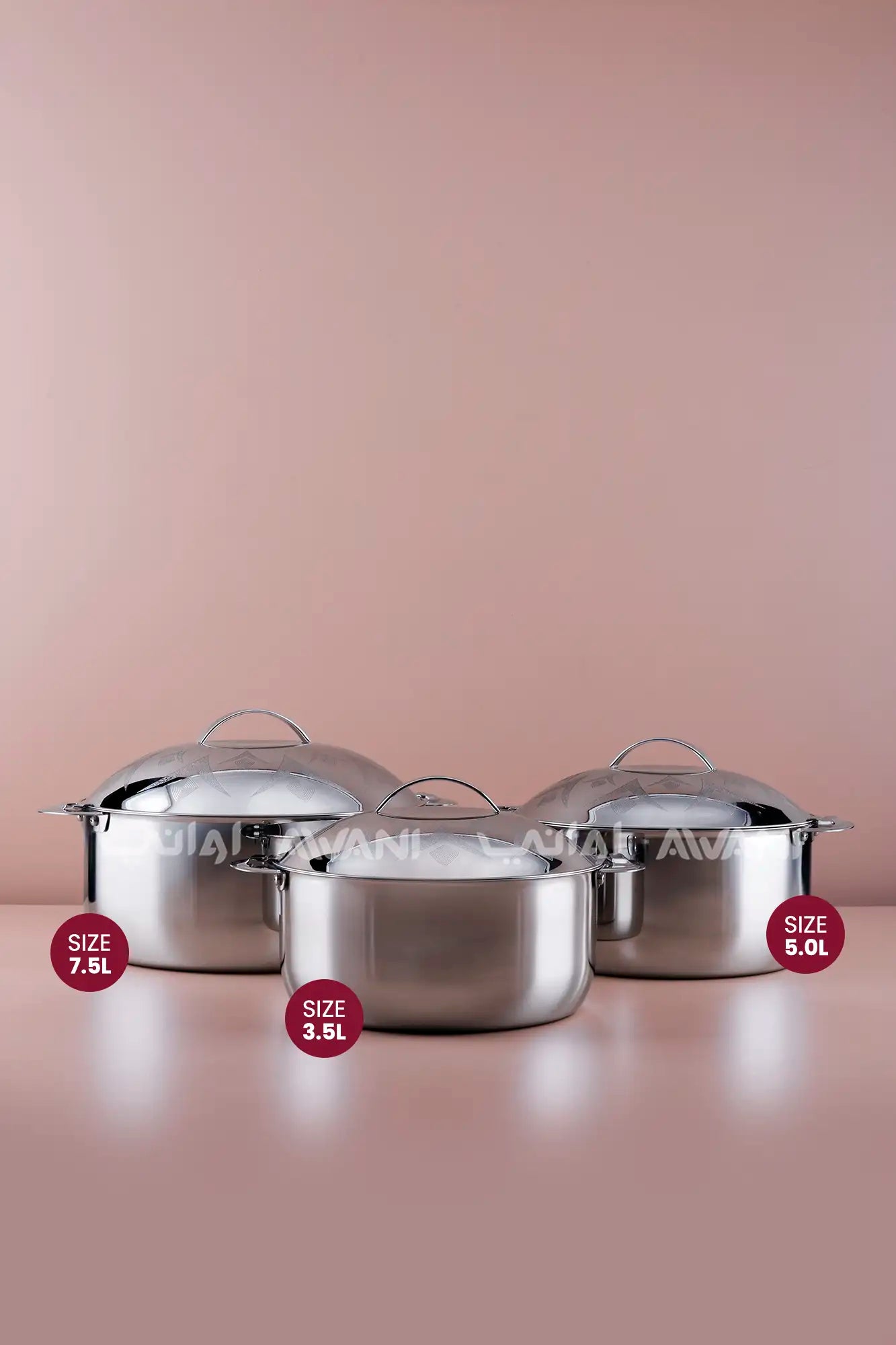 3-Piece Silver Stainless Steel Hot Pot Set – 3.5/5/7.5