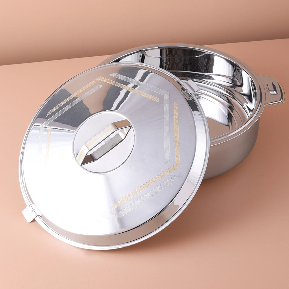 The Silver & Gold Hotpot Stainless Steel Casserole is the perfect solution for keeping your food hot for a long time. Its thermal serving bowl design traps in heat, ensuring your food stays warm and delicious. Available in various sizes, from 1200 ML to 8000 ML, this casserole is a must-have for any kitchen.